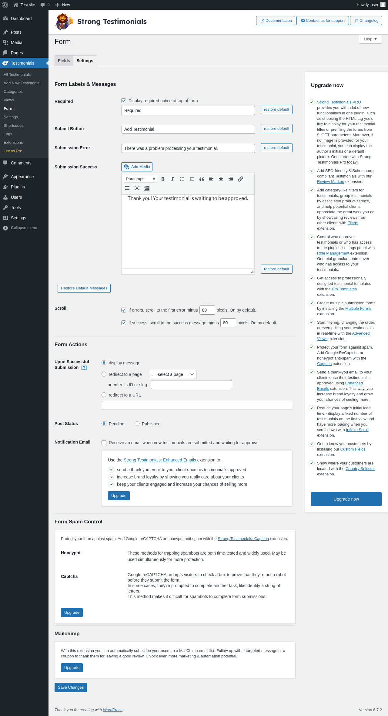 Does Strong Testimonials work with WordPress 6.7.2 and PHP 8.1.12? A smoke test was performed on .