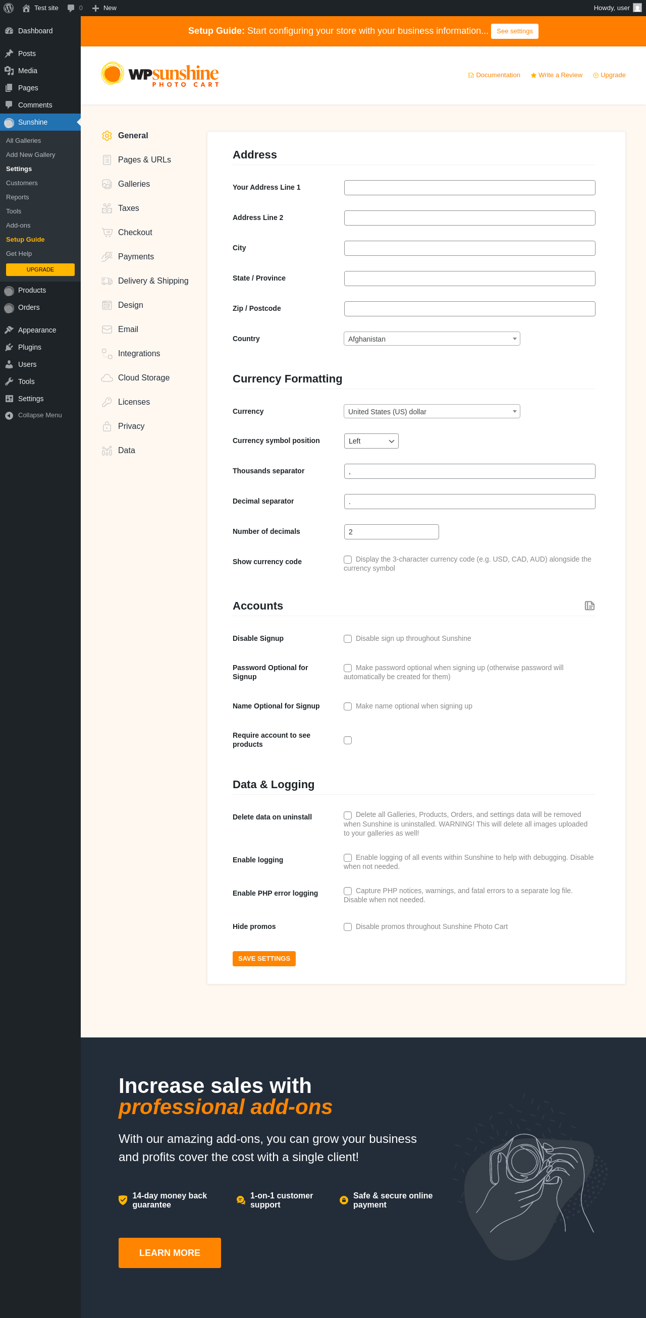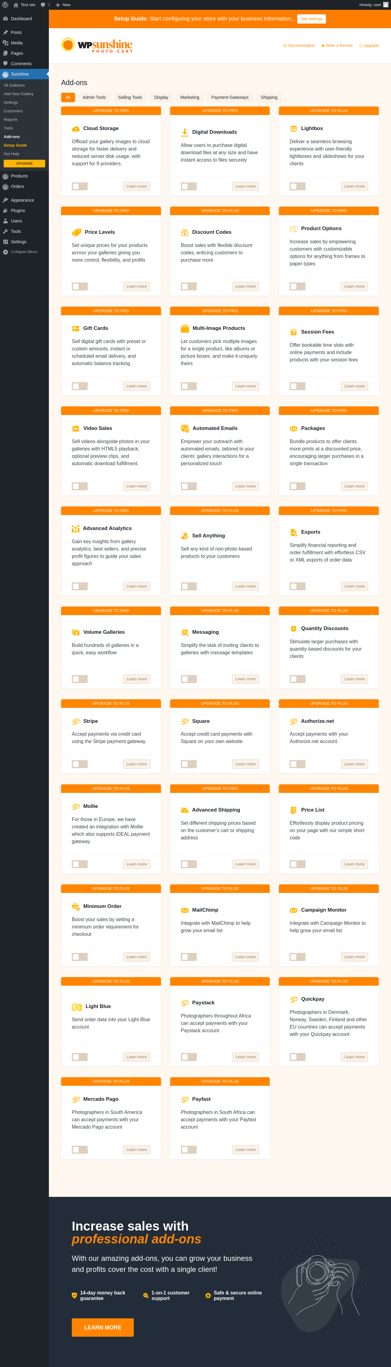 | URL | /wp-admin/edit.php?post_type=sunshine-gallery&page=sunshine-addons |