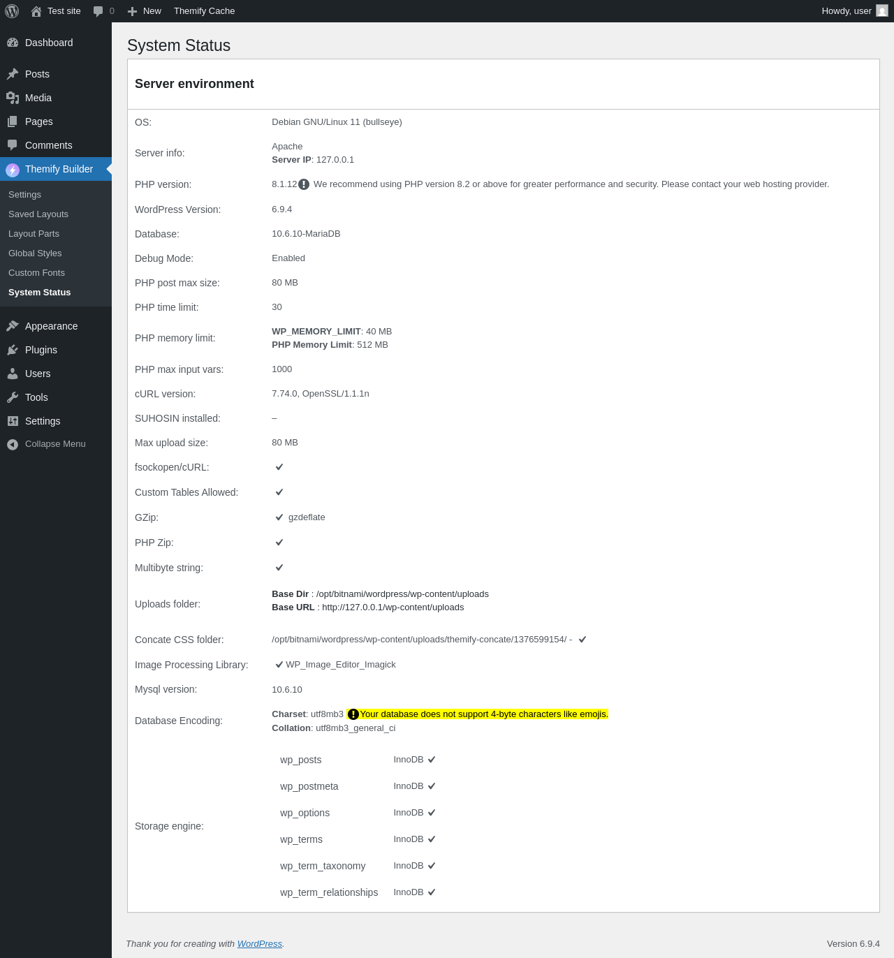 Does Themify Builder work with WordPress 6.9.4 and PHP 8.1.12? A smoke test was performed on 2026-04-17 02:02:06 UTC .