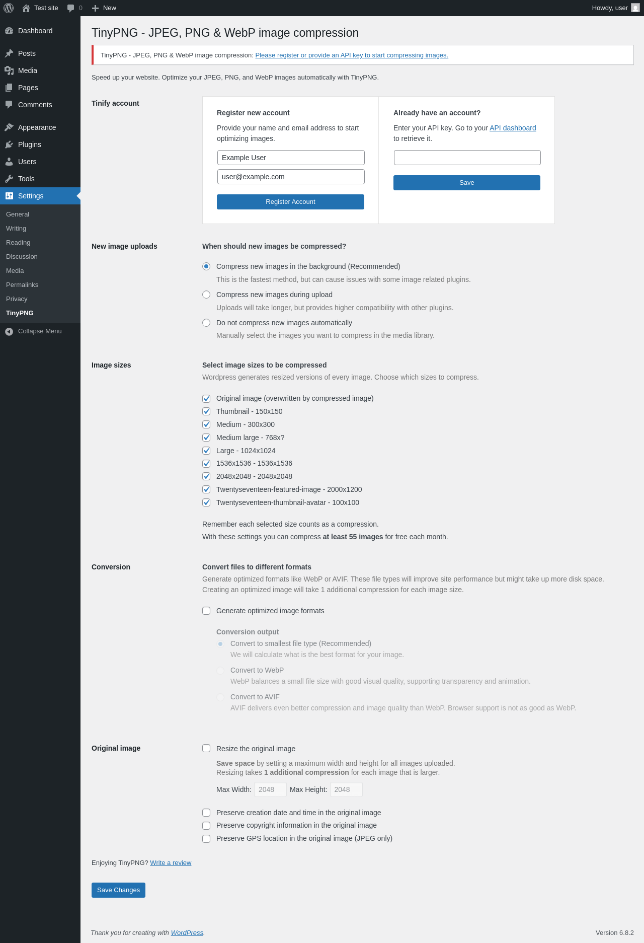 | URL | /wp-admin/options-general.php?page=tinify |