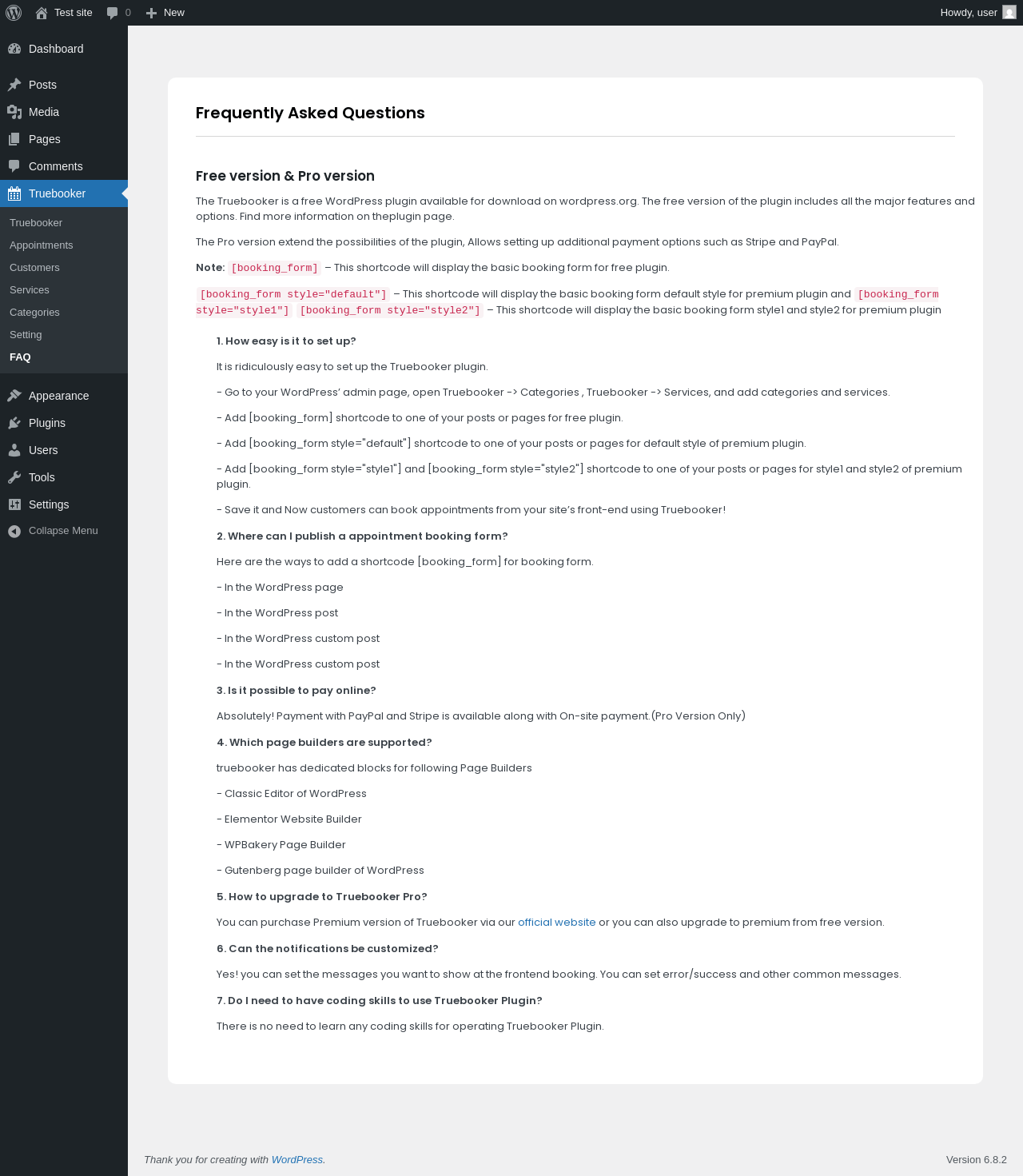 Does "TrueBooker - Appointment Booking and Scheduler Plugin" work with WordPress 6.8.2 and PHP 8.1.12? A smoke test was performed on .