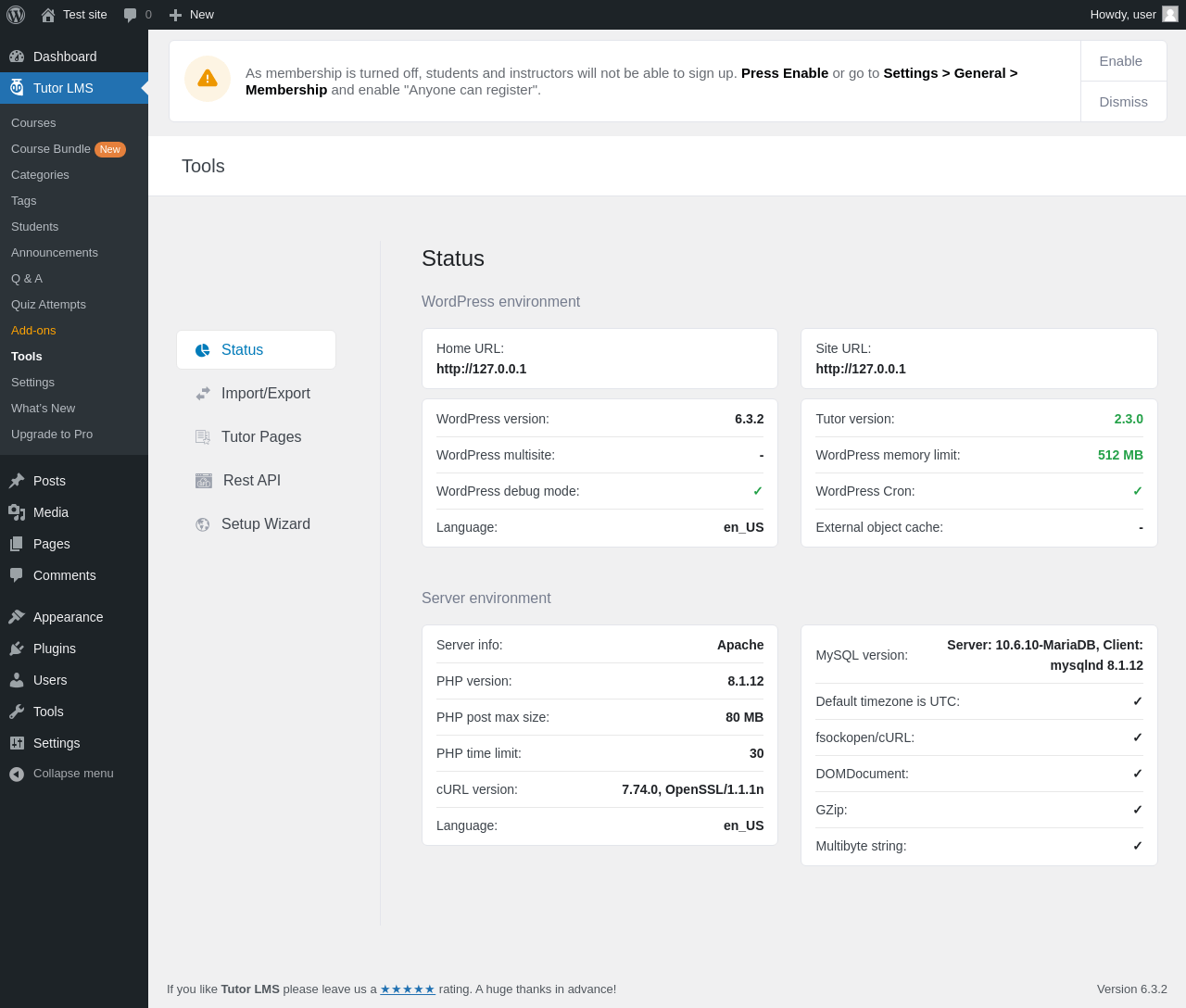 Does Tutor LMS work with WordPress 6.3.2 and PHP 8.1.12? A smoke test was performed on .