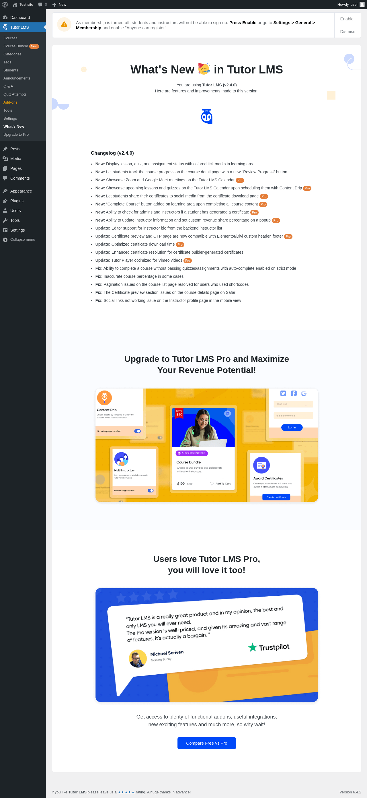 | URL | /wp-admin/admin.php?page=tutor-whats-new |