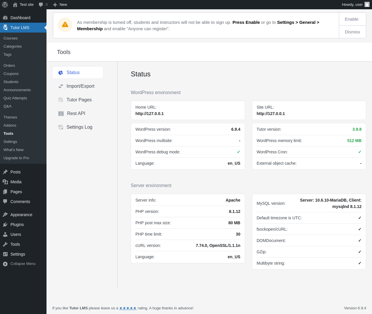 Does Tutor LMS work with WordPress 6.9.4 and PHP 8.1.12? A smoke test was performed on .
