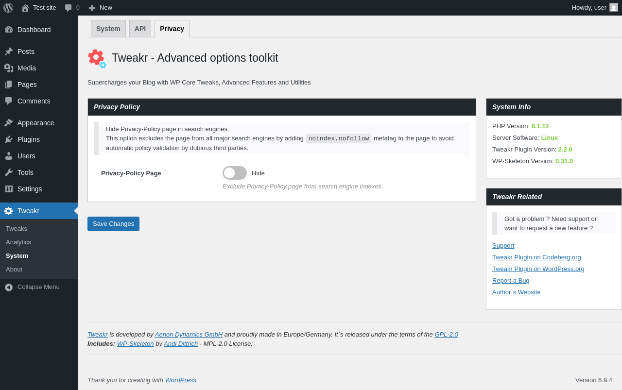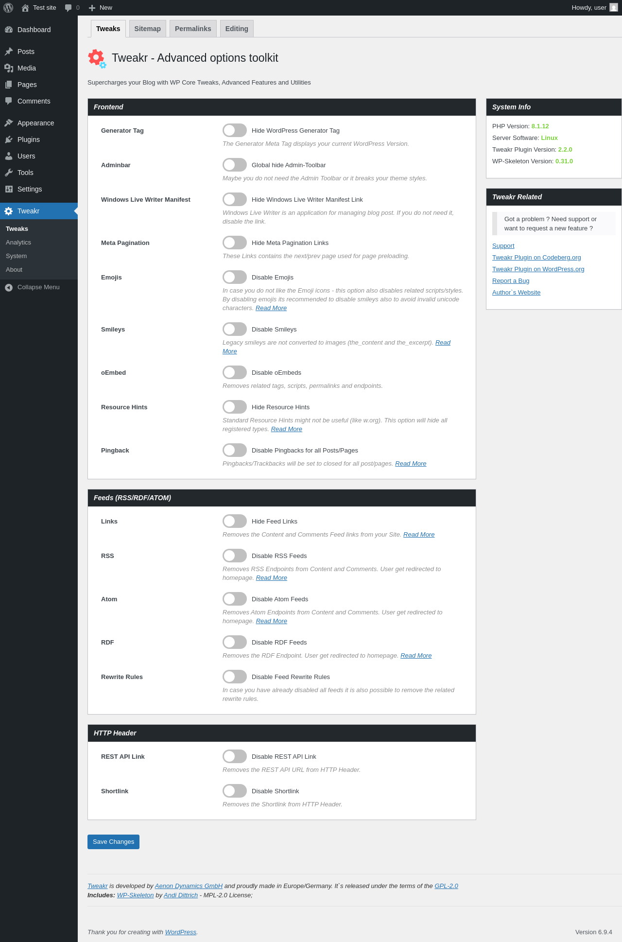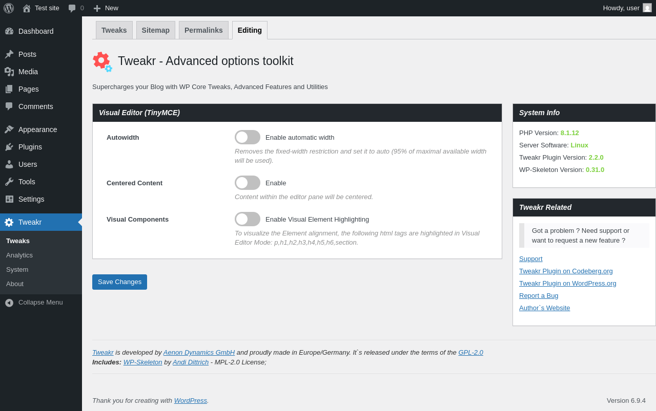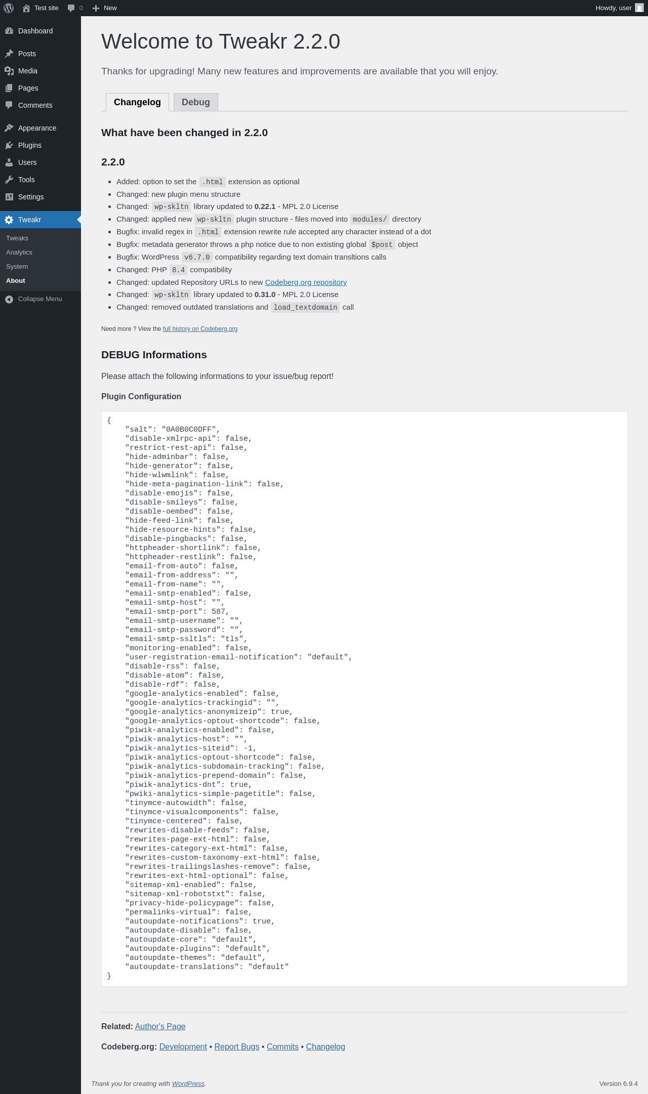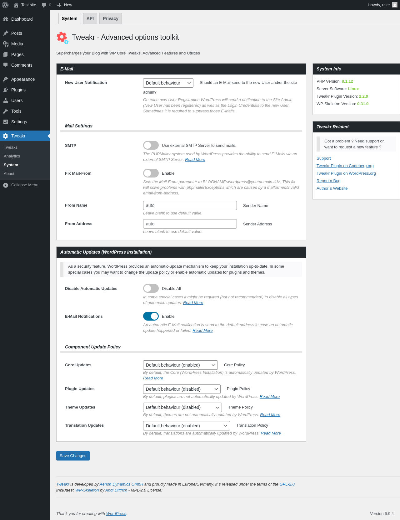 Does "Tweakr - Advanced options toolkit" work with WordPress 6.9.4 and PHP 8.1.12? A smoke test was performed on .
