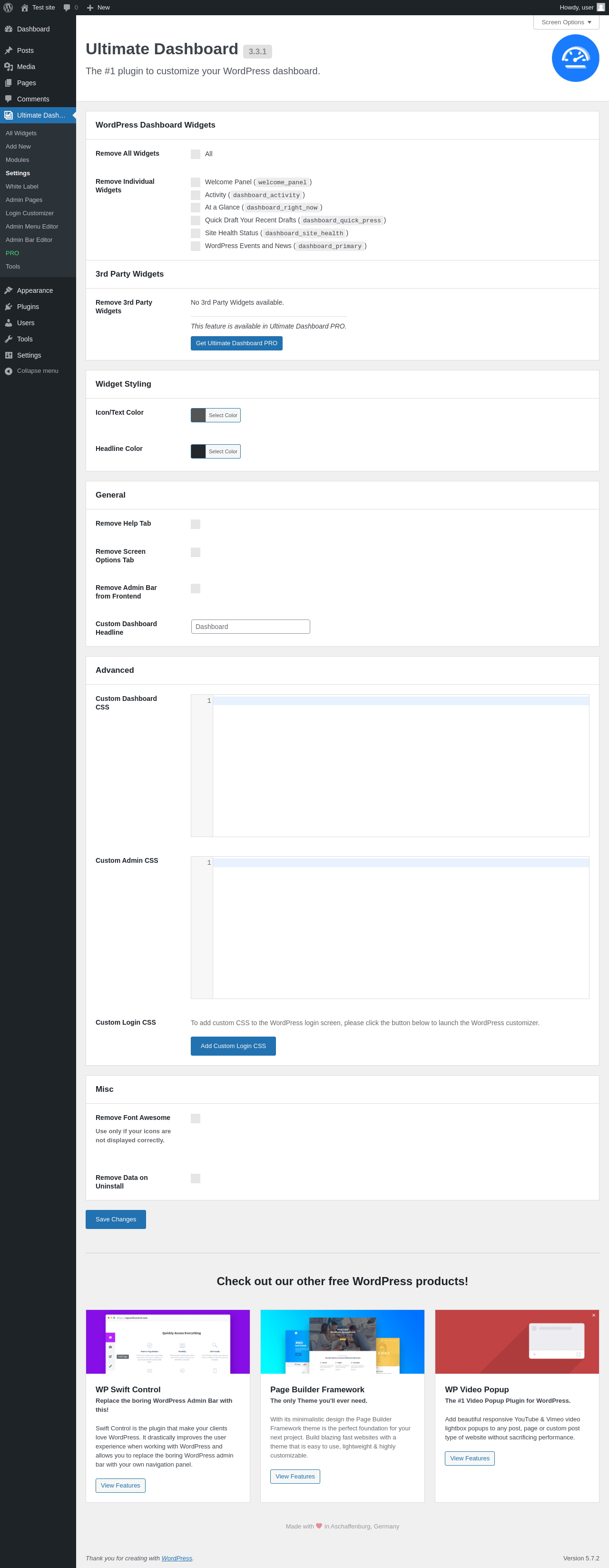 Does Ultimate Dashboard work with WordPress 5.7.2 and PHP 7.4.8? A smoke test was performed on 2021-05-18 08:37:24 UTC .