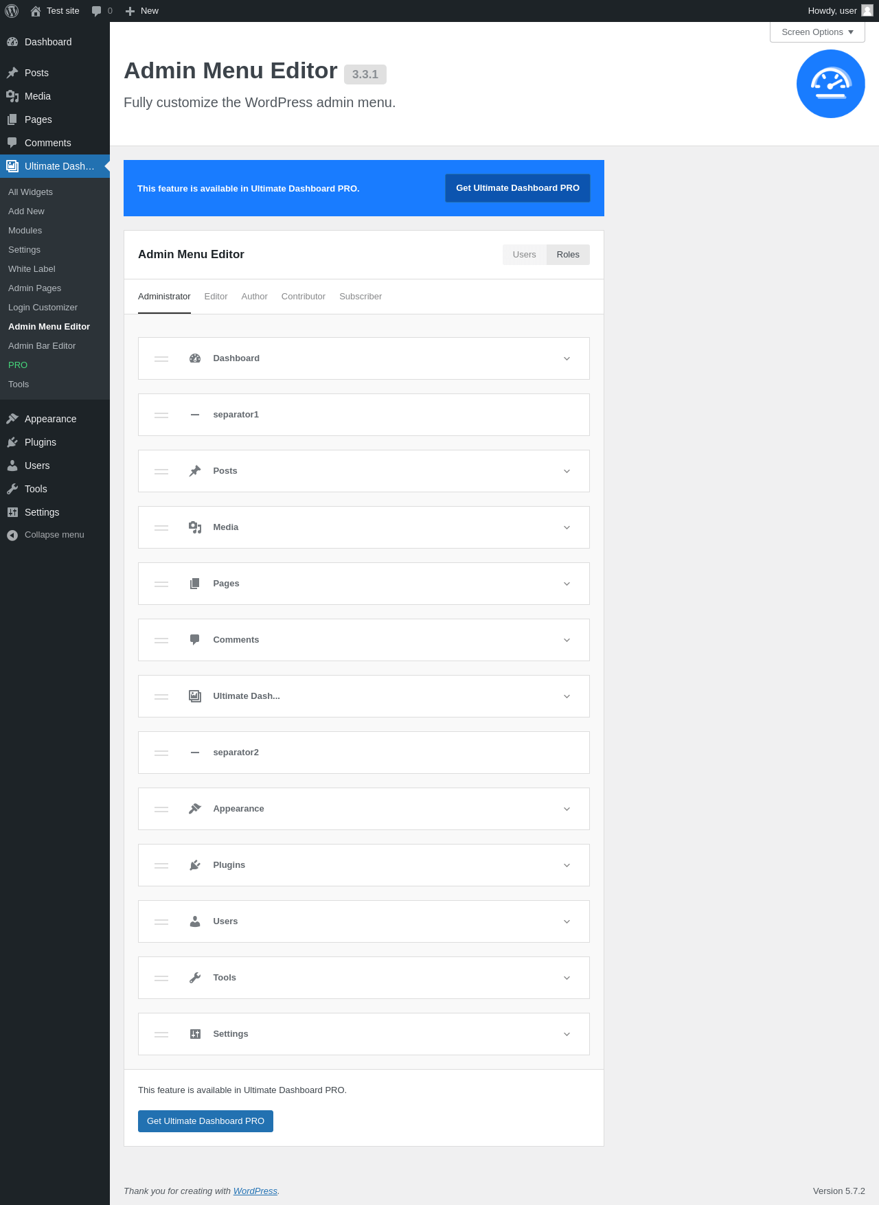 Ultimate Dash… → Admin Menu Editor