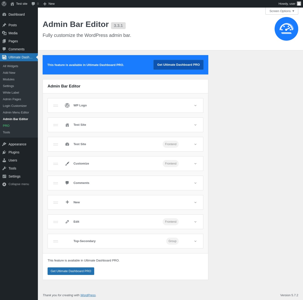Ultimate Dash… → Admin Bar Editor