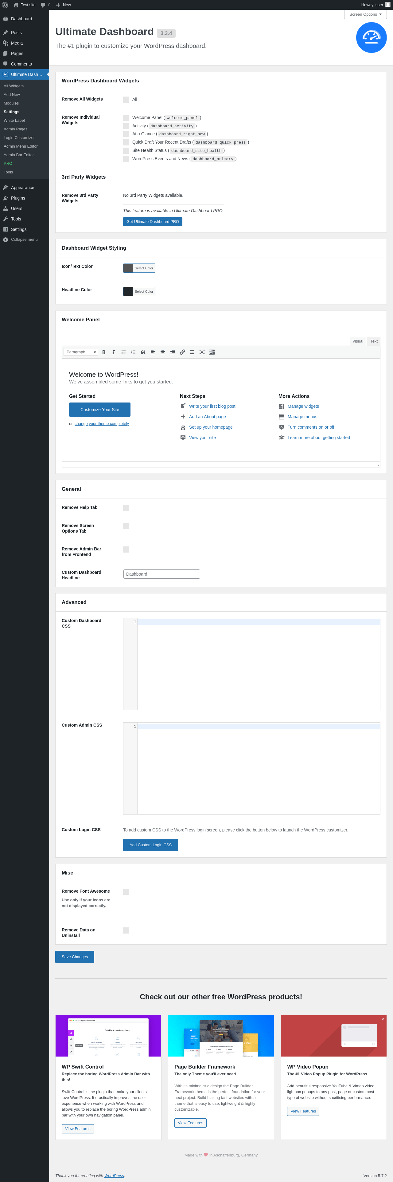 Does Ultimate Dashboard work with WordPress 5.7.2 and PHP 7.4.8? A smoke test was performed on 2021-06-08 16:10:09 UTC .