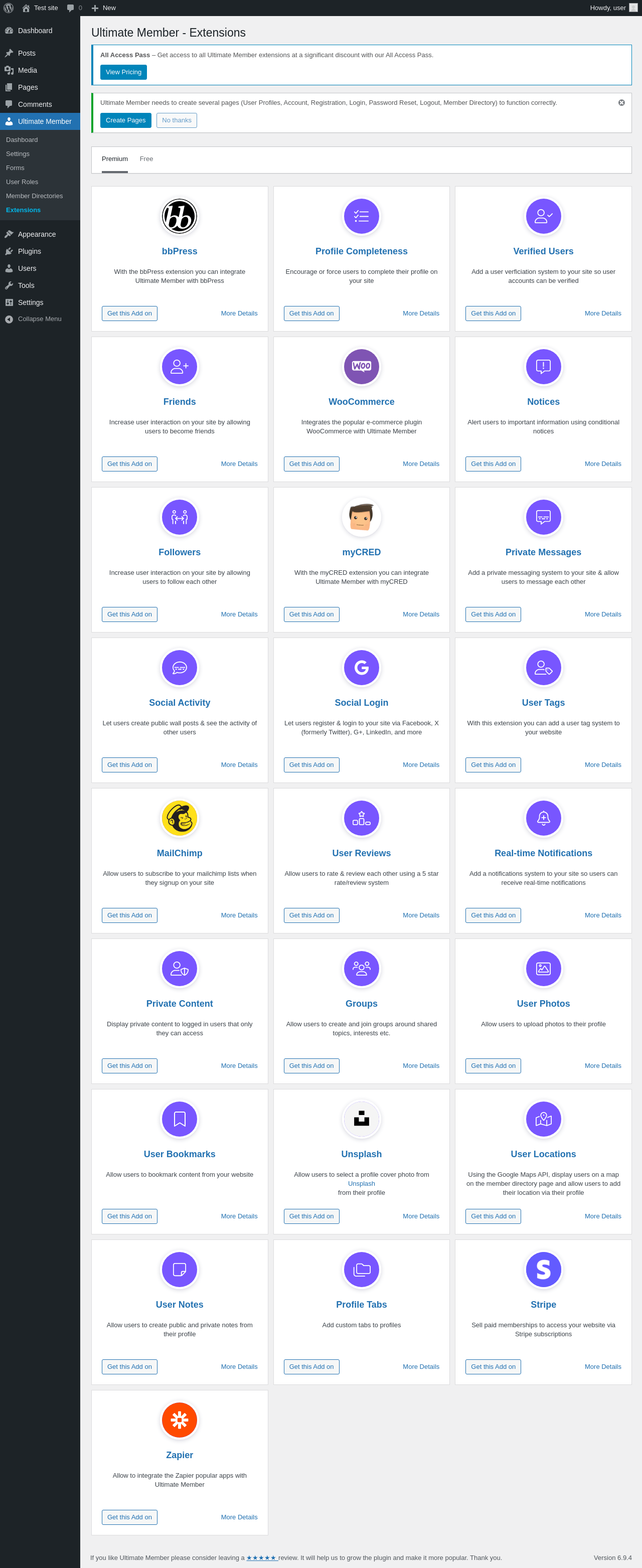 | URL | /wp-admin/admin.php?page=ultimatemember-extensions |