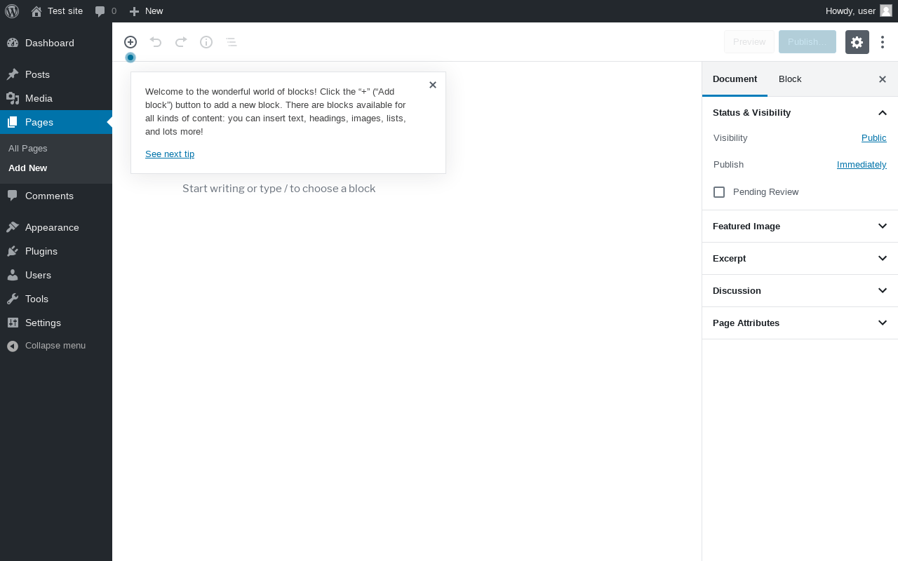 URL | /wp-admin/post-new.php?post_type=page |