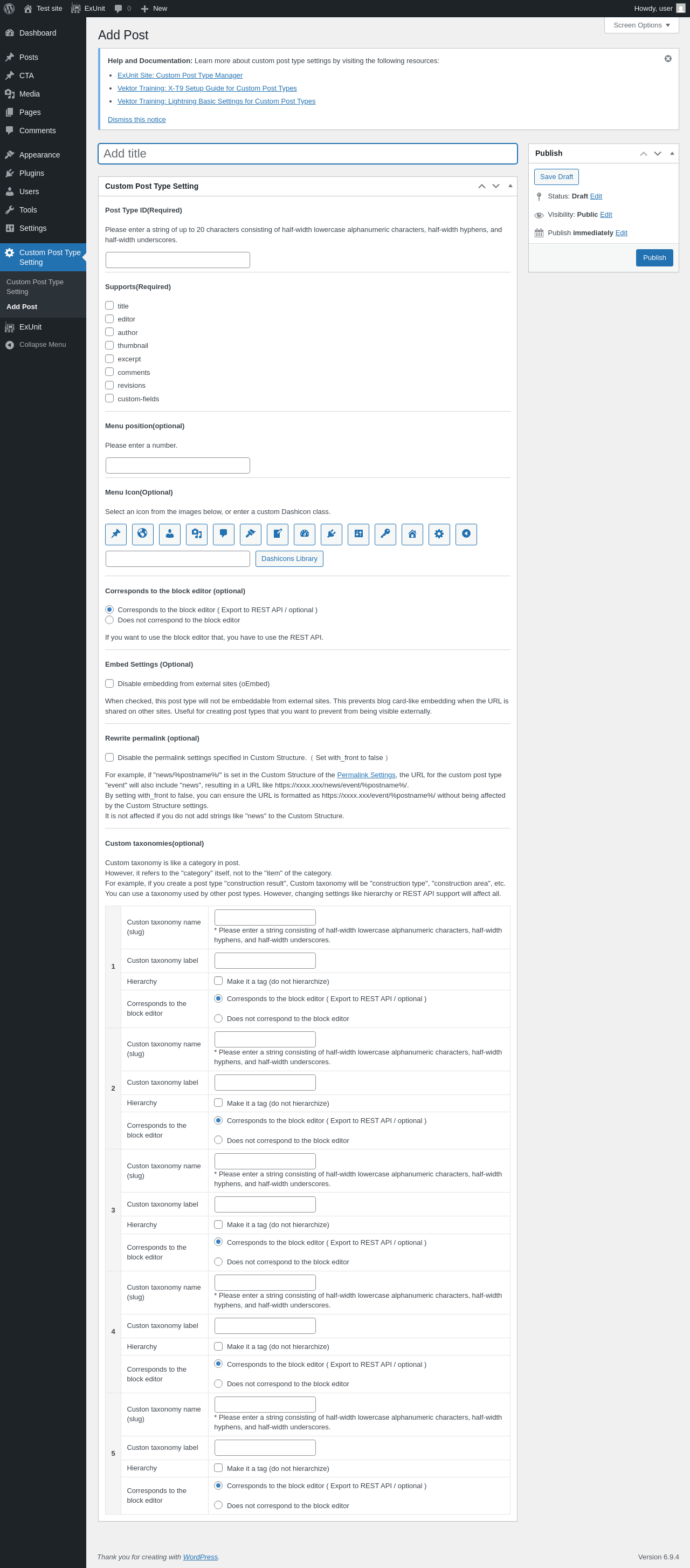 "title": "Custom Post Type Setting",