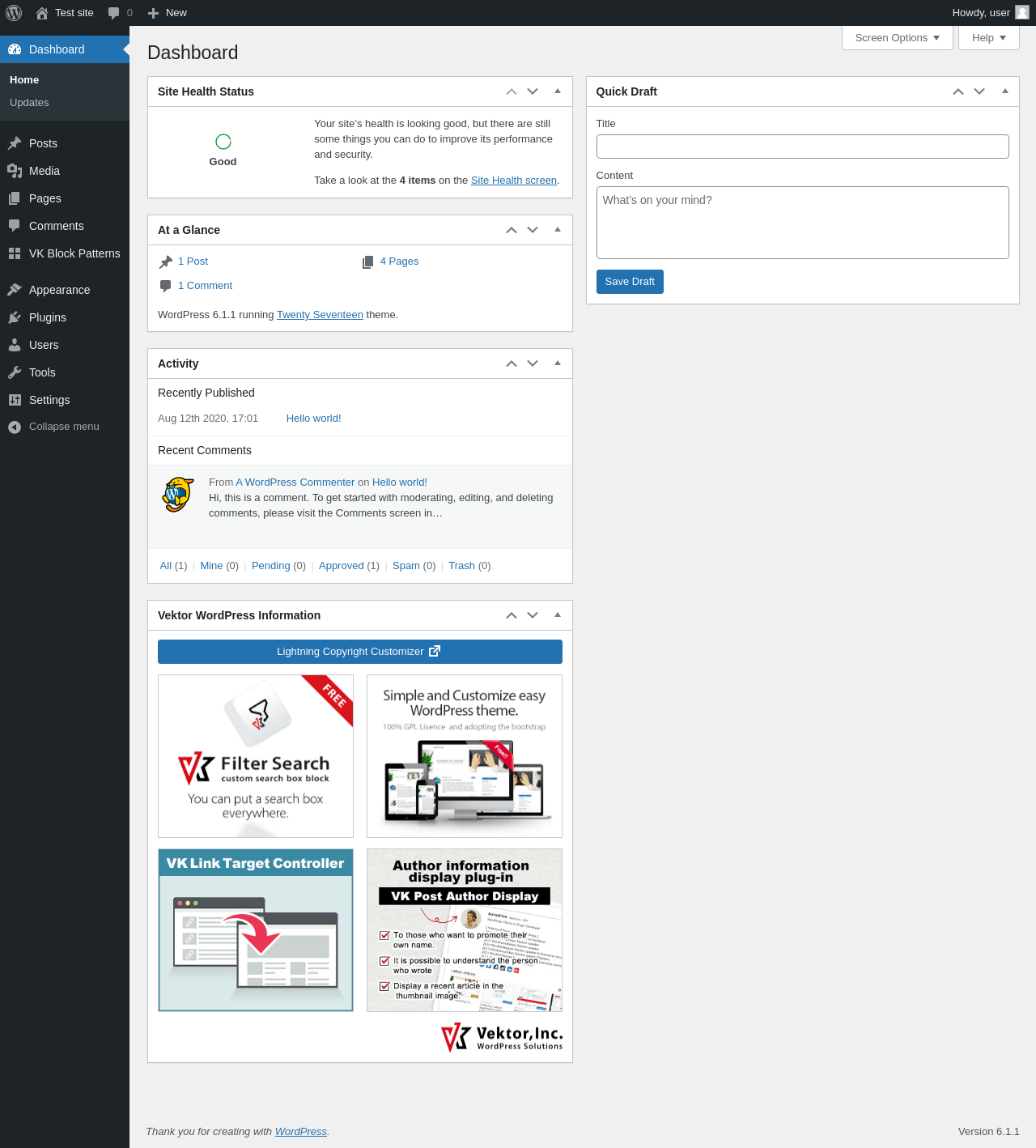 Does VK Block Patterns work with WordPress 6.1.1 and PHP 7.4.8? A smoke test was performed on .