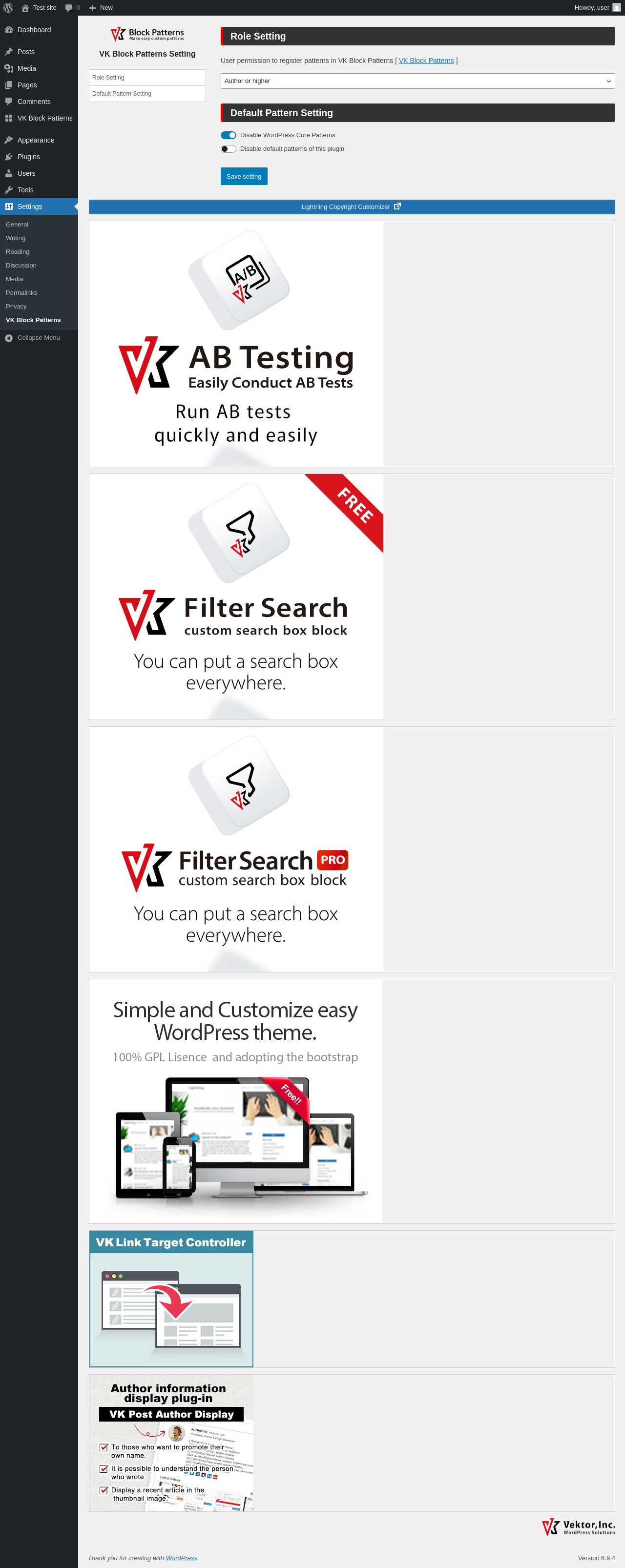 | URL | /wp-admin/options-general.php?page=vk_block_patterns_options |