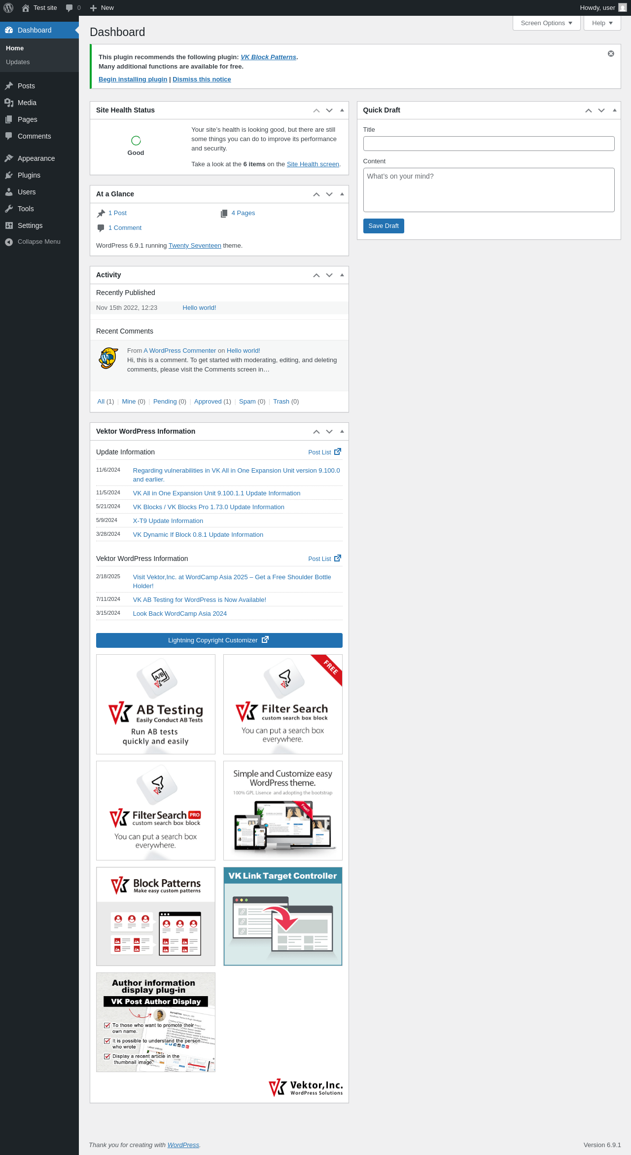 Does VK Blocks work with WordPress 6.9.1 and PHP 8.1.12? A smoke test was performed on .