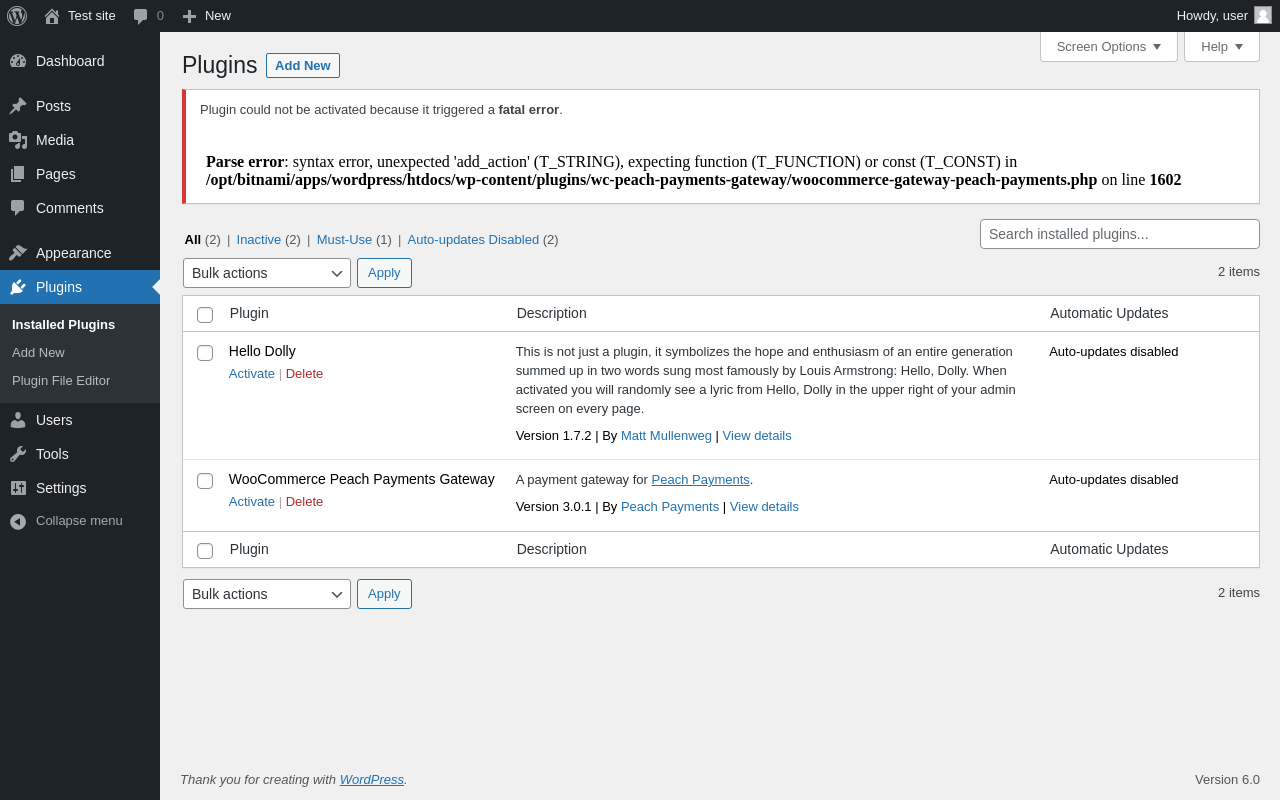 [07-Jul-2022 13:13:43 UTC] PHP Parse error: syntax error, unexpected 'add_action' (T_STRING), expecting function (T_FUNCTION) or const (T_CONST) in /wp-content/plugins/wc-peach-payments-gateway/woocommerce-gateway-peach-payments.php on line 1602