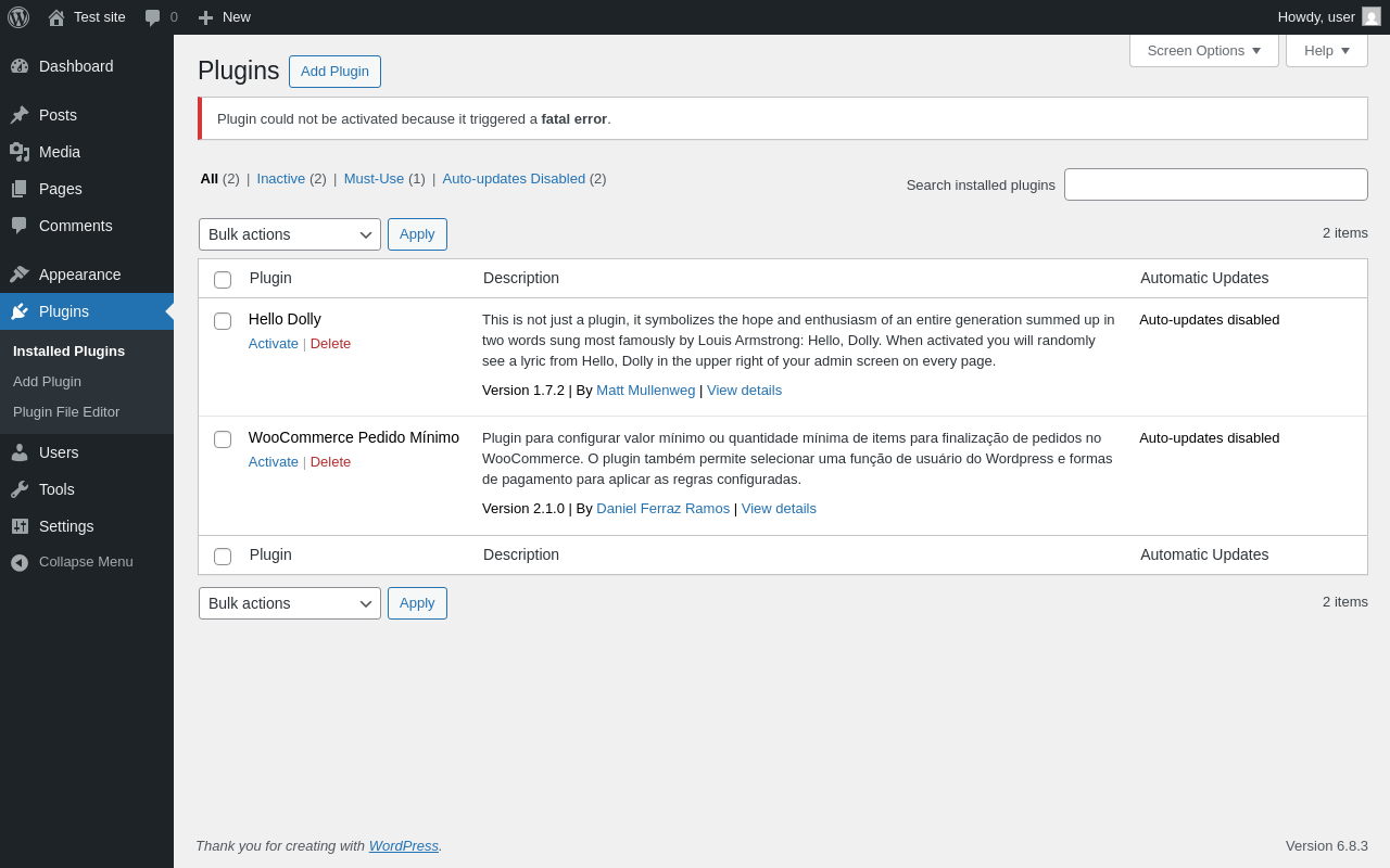 Does WooCommerce Pedido Mínimo work with WordPress 6.8.3 and PHP 8.1.12? A smoke test was performed on .