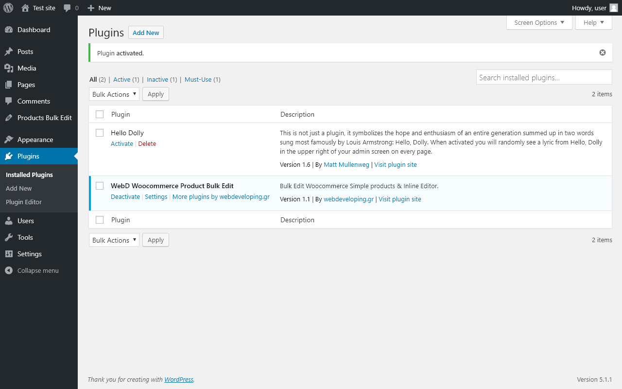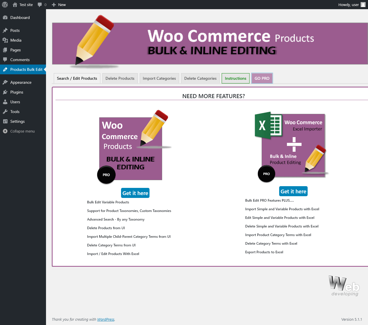 Does "WebD Woocommerce Product Bulk Edit" work with WordPress 5.1.1 and PHP 7.0.16? A smoke test was performed on .