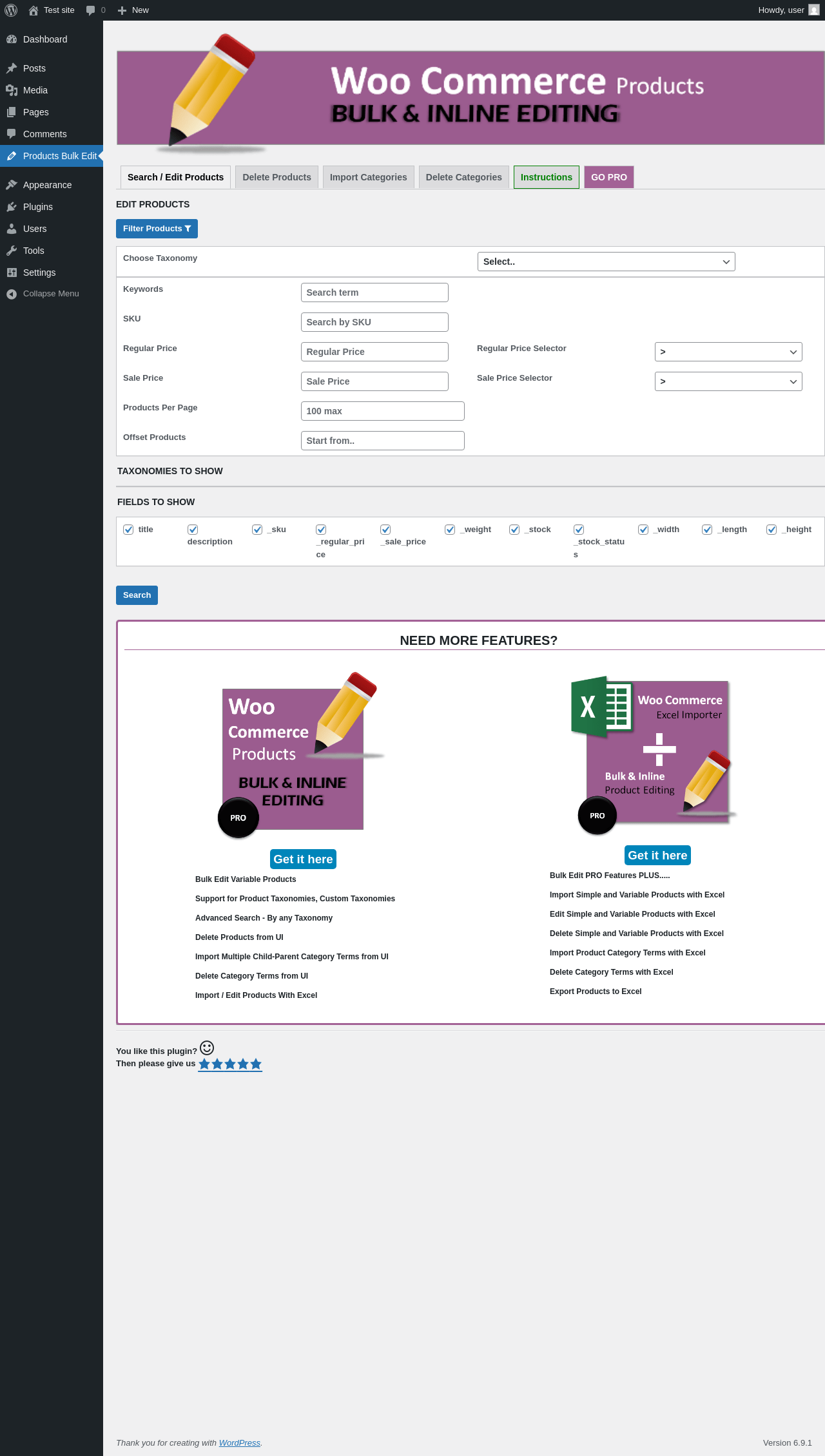 | Most complex class | WebdWoocommerceBulkEditProducts |
