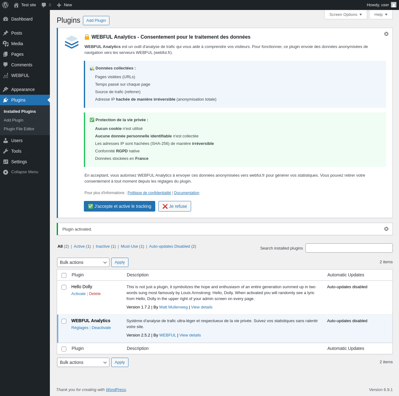 Does WEBFUL Analytics work with WordPress 6.9.1 and PHP 8.1.12? A smoke test was performed on .