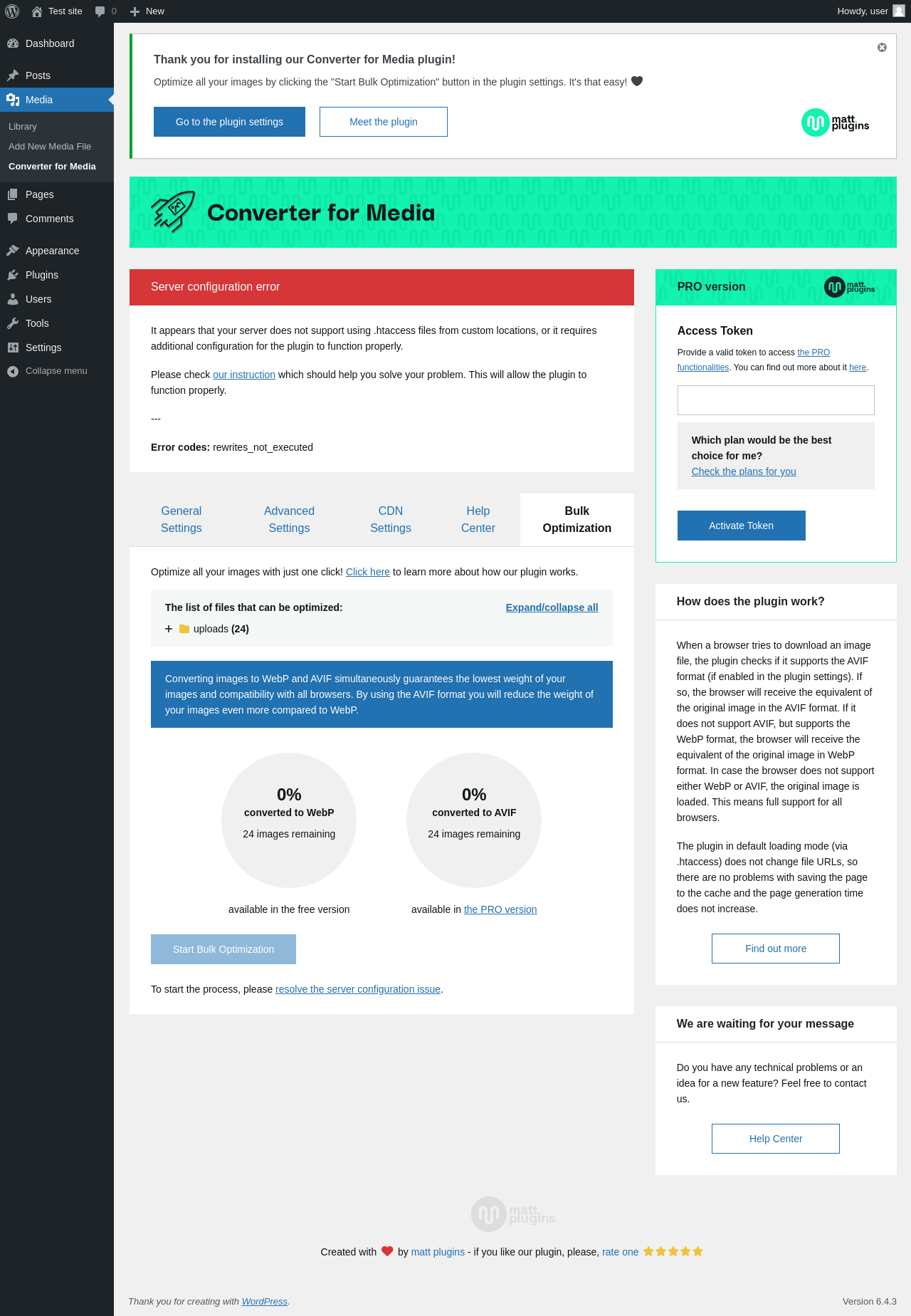 Does Converter for Media work with WordPress 6.4.3 and PHP 8.1.12? A smoke test was performed on .
