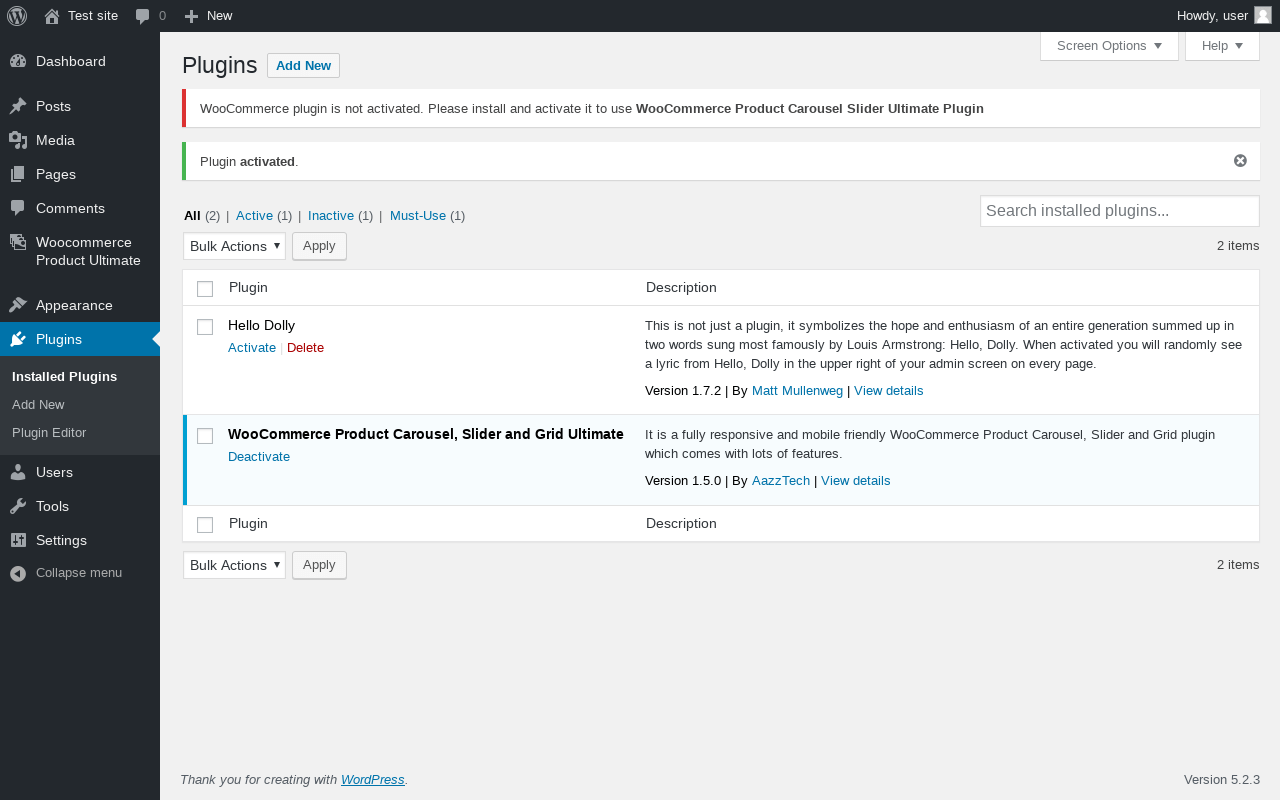 Does "WooCommerce Product Carousel, Slider and Grid Ultimate" work with WordPress 5.2.3 and PHP 7.2.16? A smoke test was performed on .