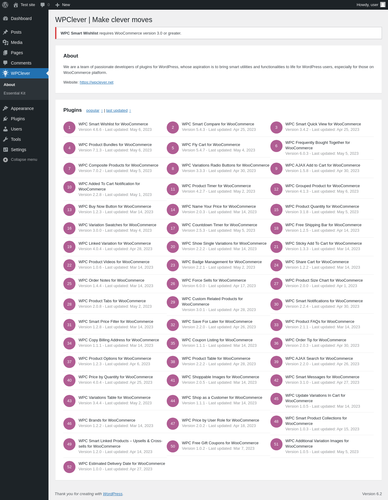 Does "WPC Smart Wishlist for WooCommerce" work with WordPress 6.2 and PHP 8.1.12? A smoke test was performed on .