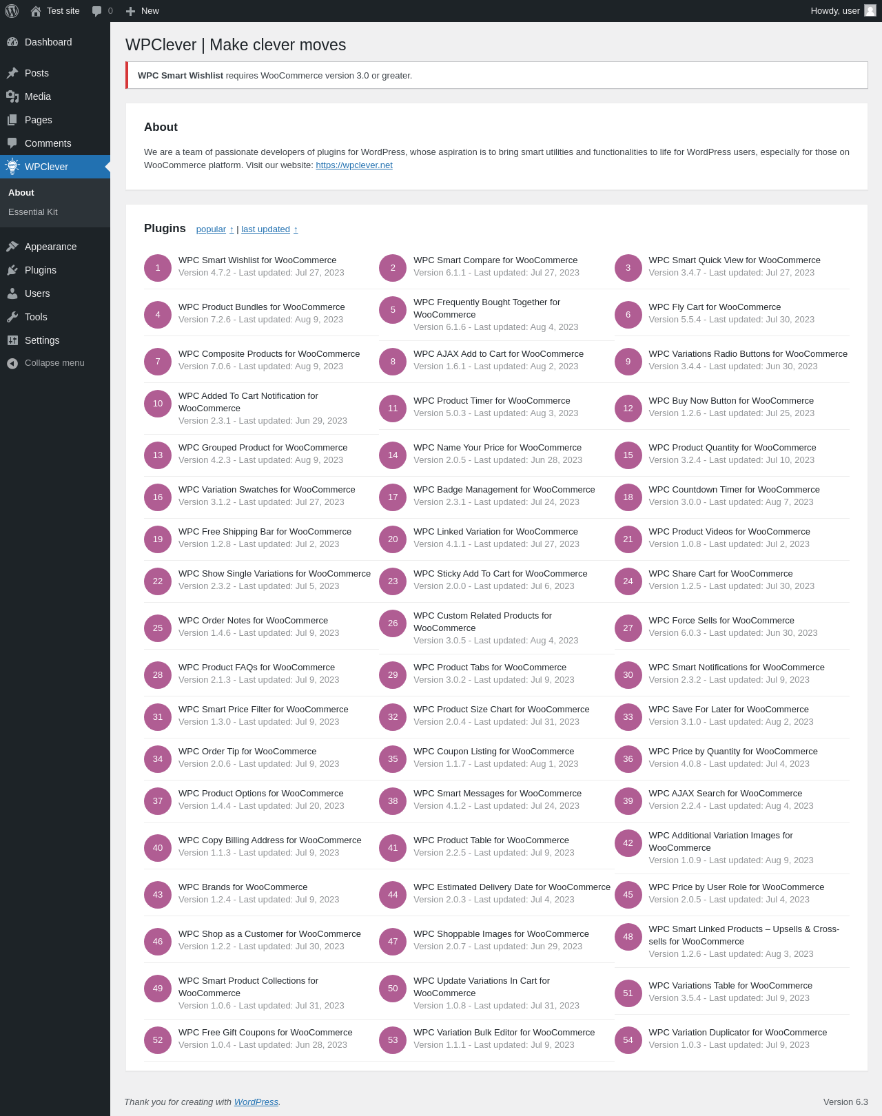 Does "WPC Smart Wishlist for WooCommerce" work with WordPress 6.3 and PHP 8.1.12? A smoke test was performed on .