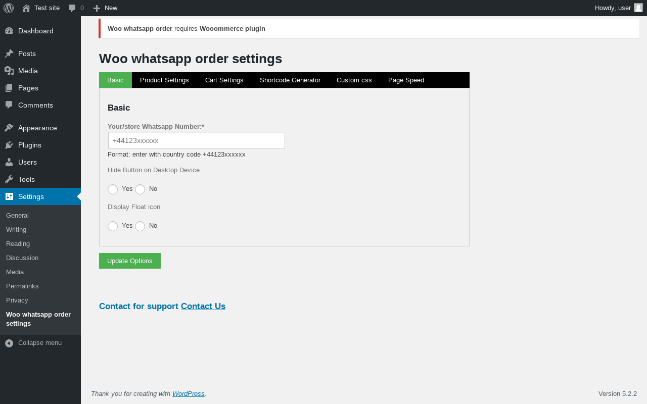 Does Woo whatsapp order work with WordPress 5.2.2 and PHP 7.2.16? A smoke test was performed on .