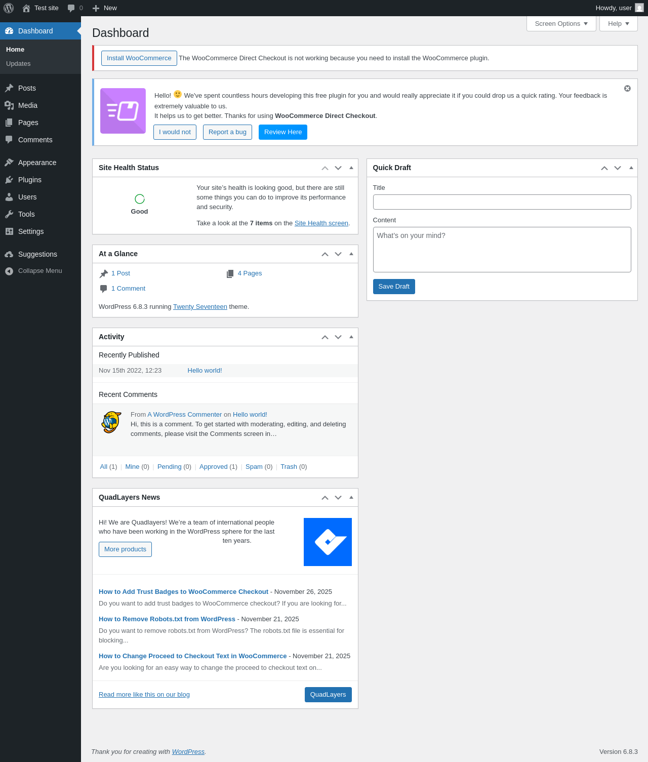 Does WooCommerce Direct Checkout work with WordPress 6.8.3 and PHP 8.1.12? A smoke test was performed on .