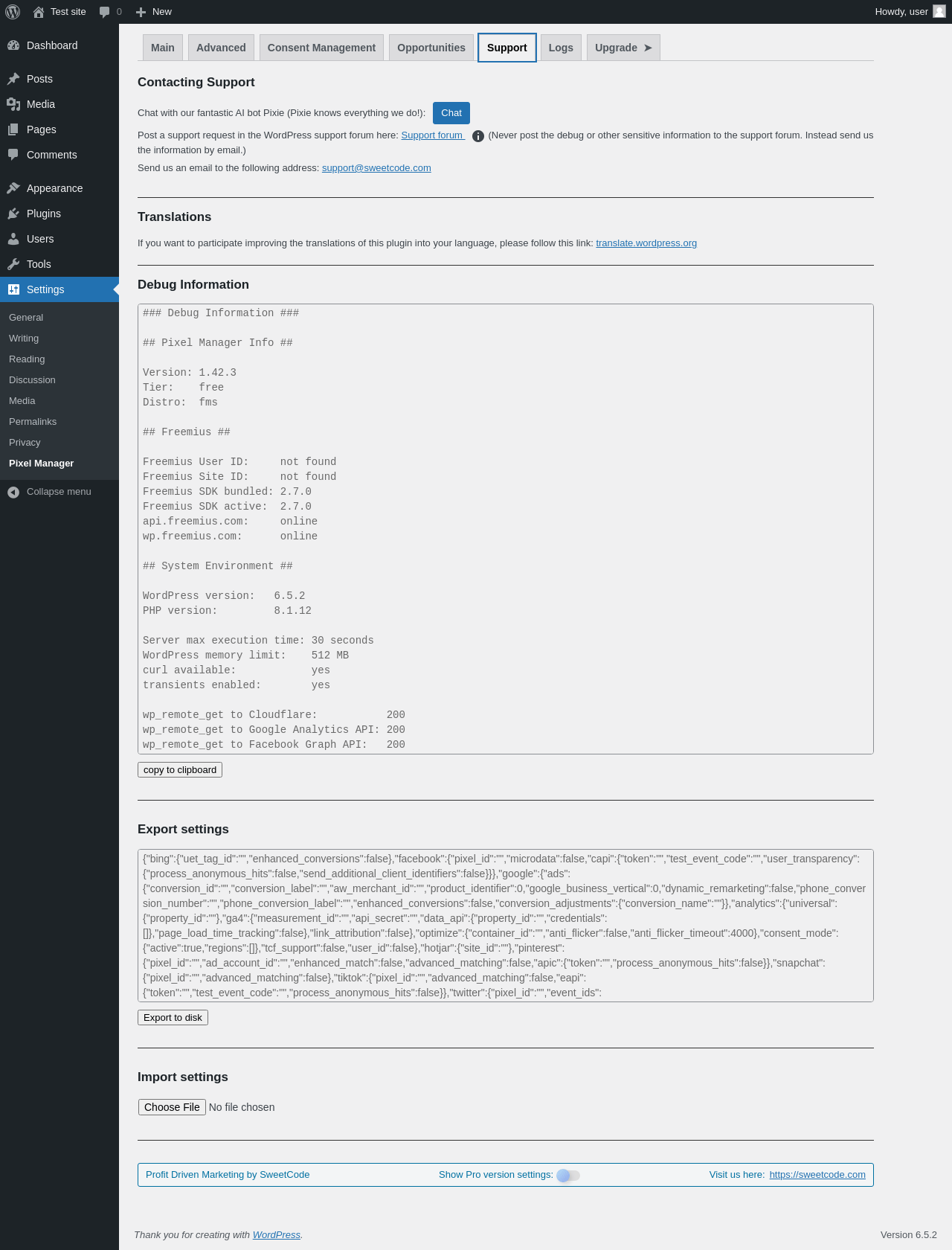 | Most complex function | SweetCode\Pixel_Manager\Admin\Validations::options_validate() |