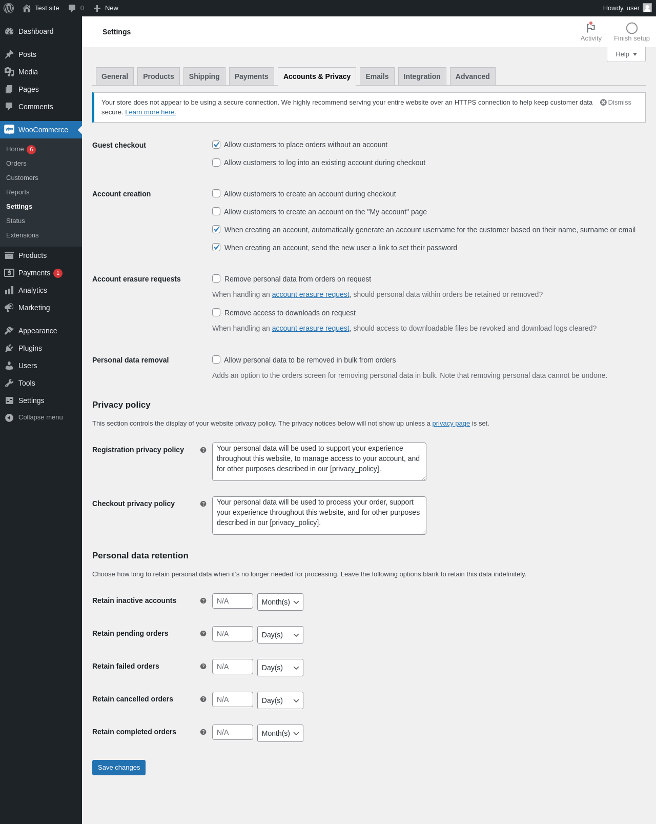 WooCommerce → Settings → Accounts & Privacy
