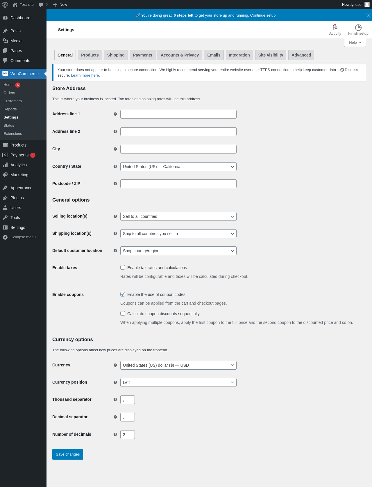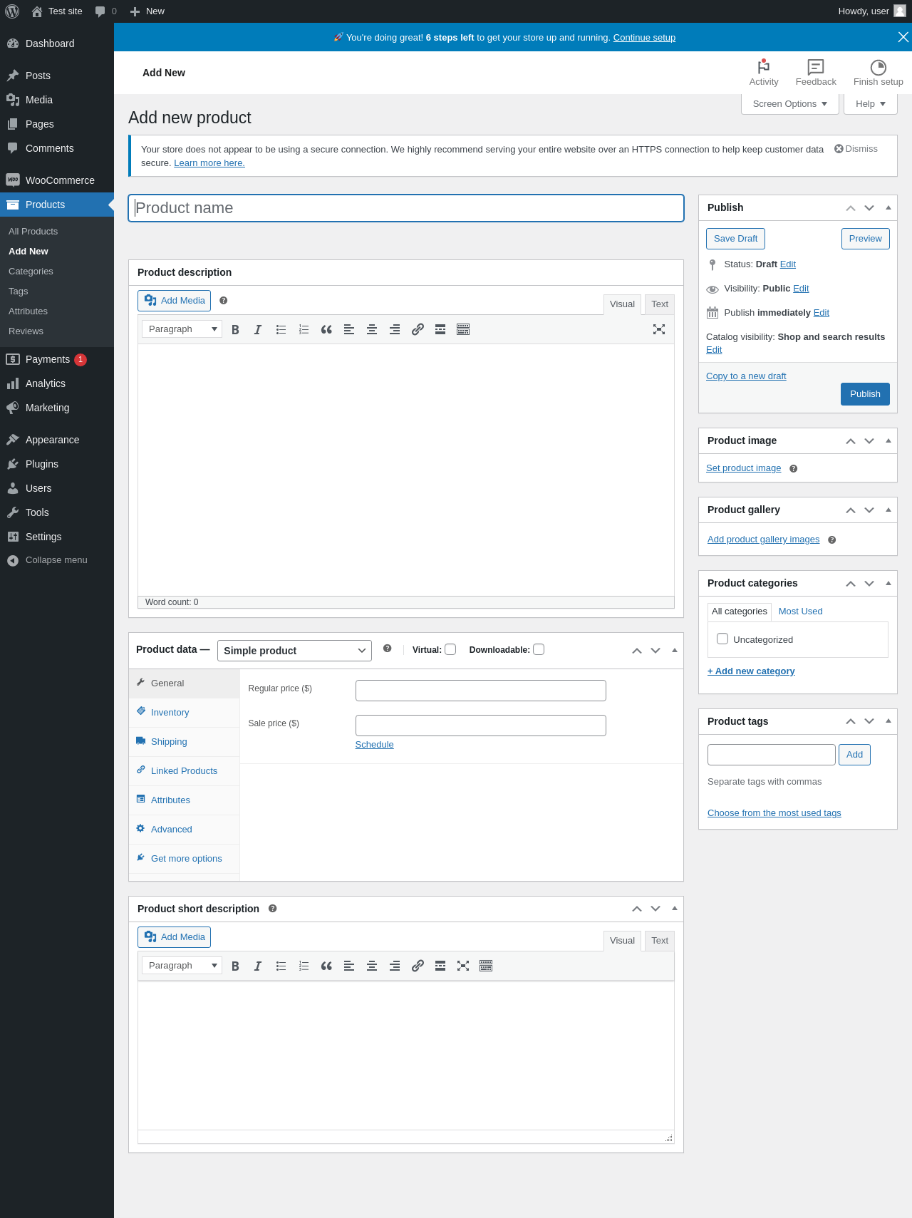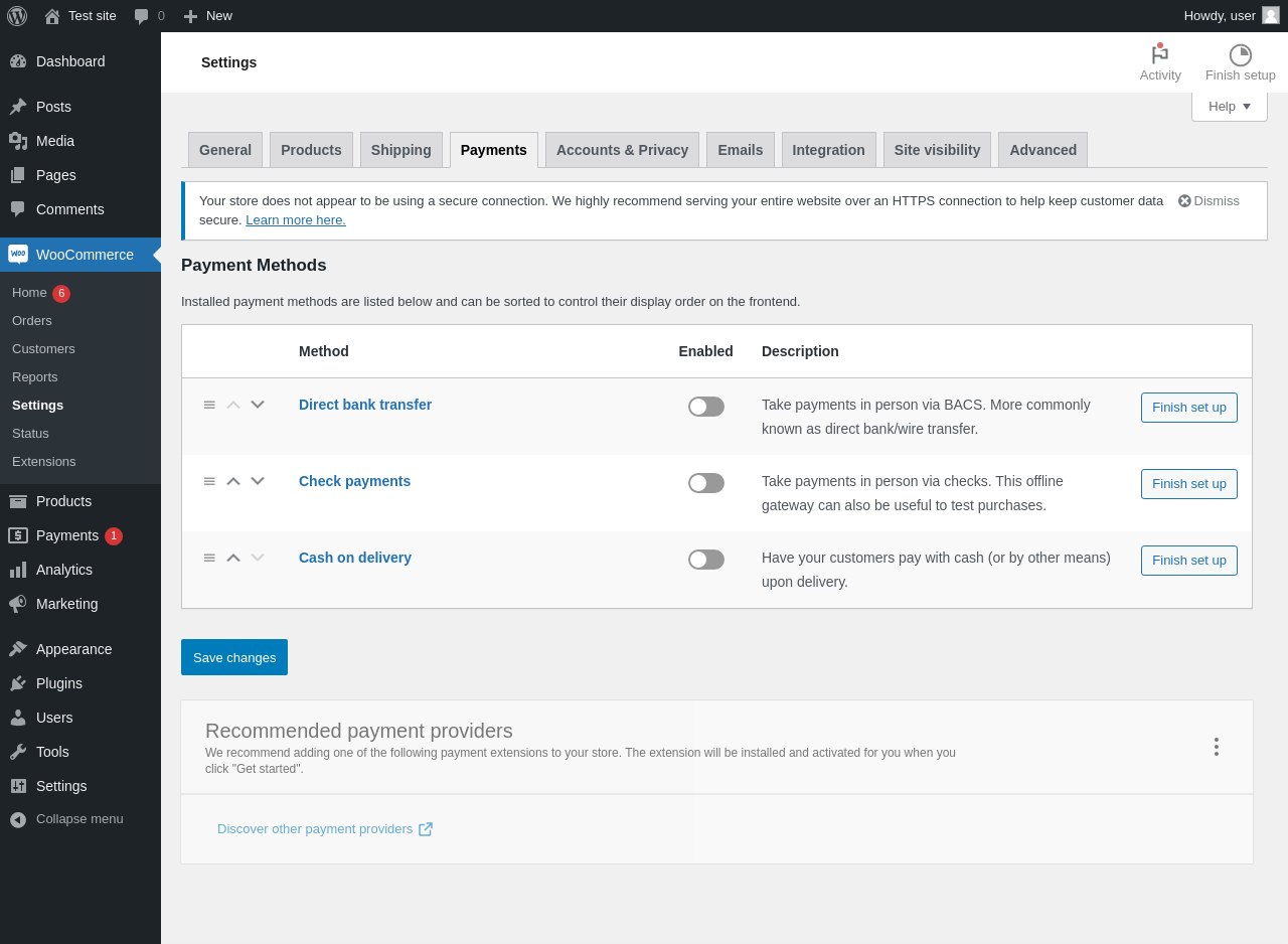 Dashboard ‹ Test site — WordPress