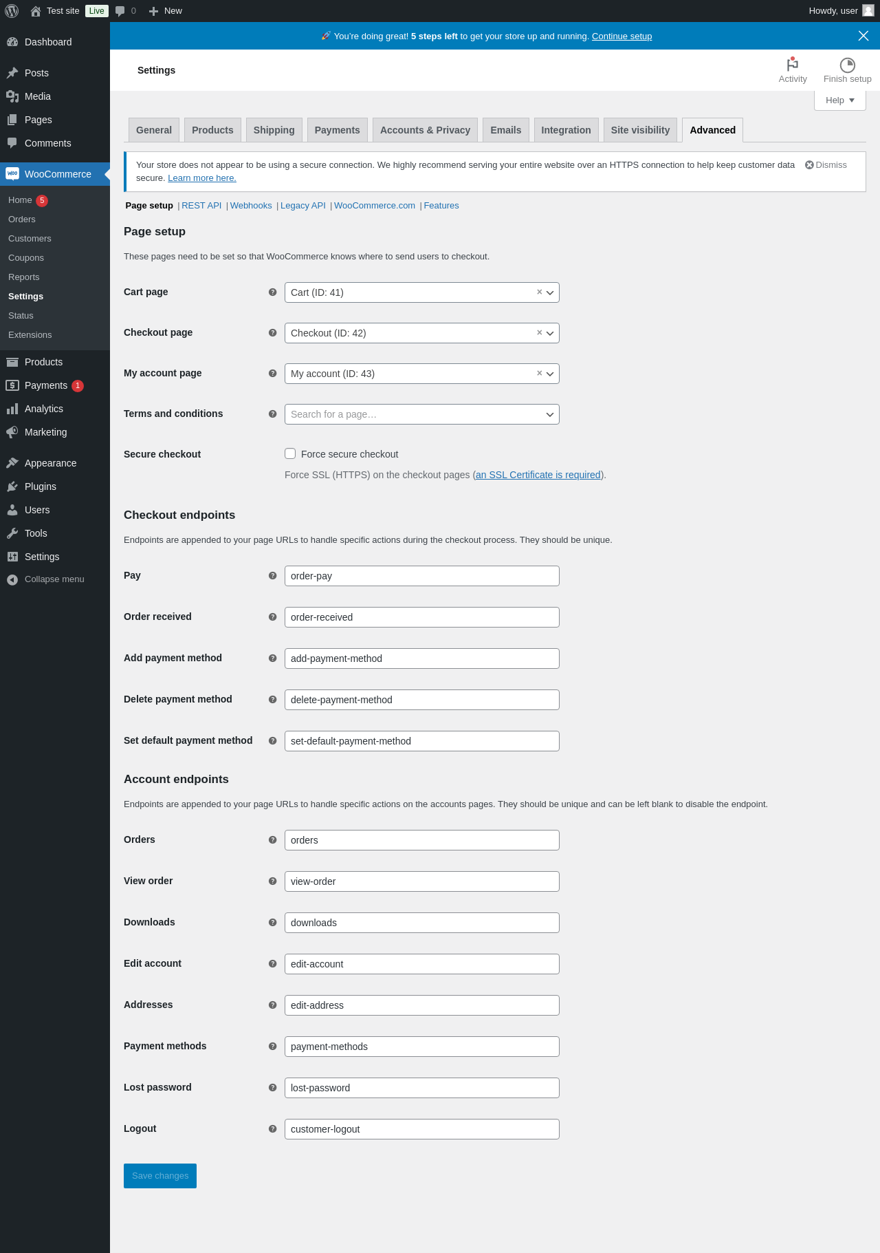 Pages 47 Setup Wizard ‹ WooCommerce ‹ Test site