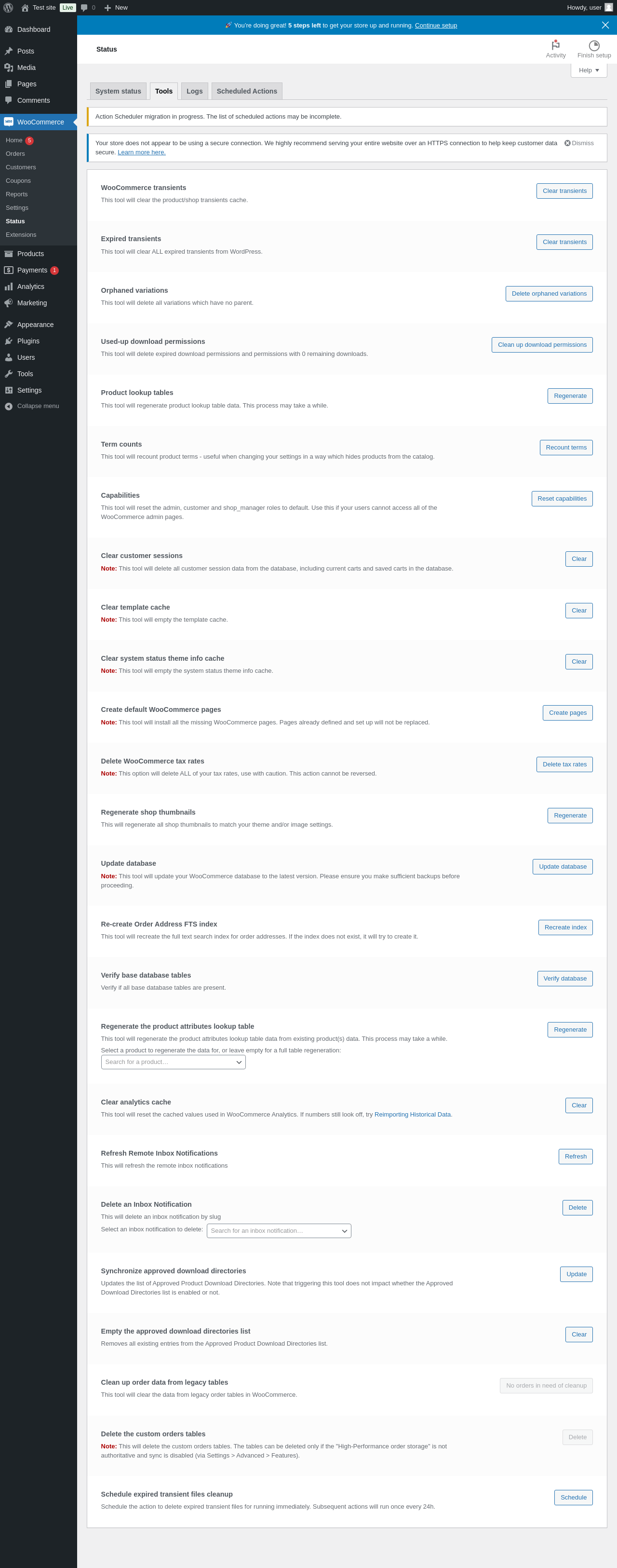 WooCommerce → Status → Tools