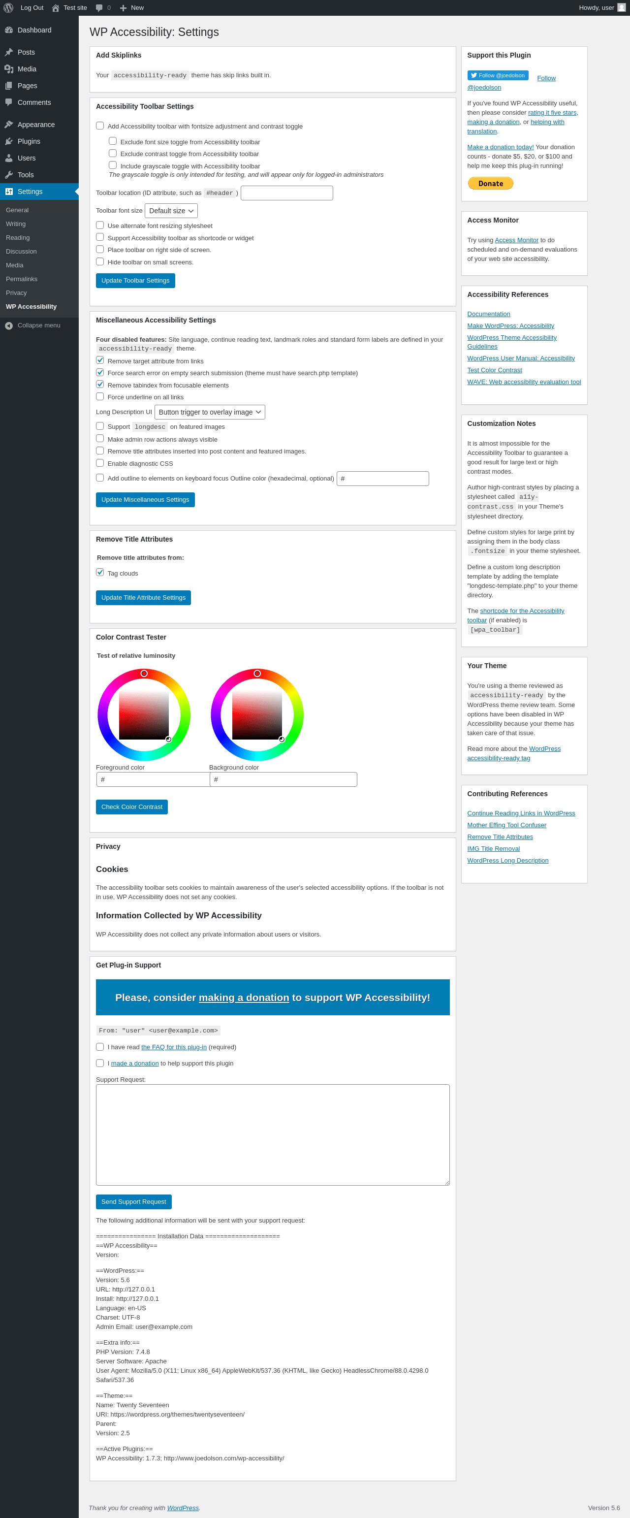 Does WP Accessibility work with WordPress 5.6 and PHP 7.4.8? A smoke test was performed on .