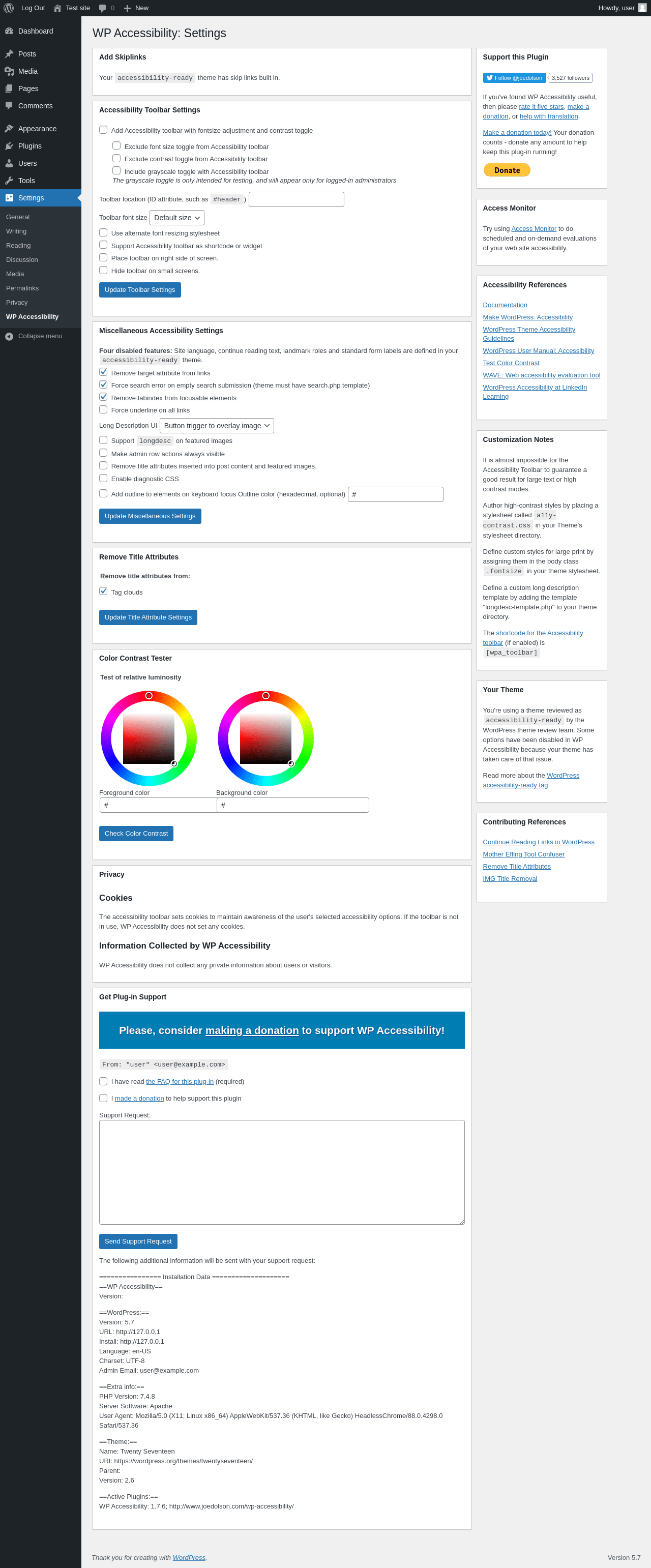 | Requested URL | /wp-admin/options-general.php?page=wp-accessibility/wp-accessibility.php |