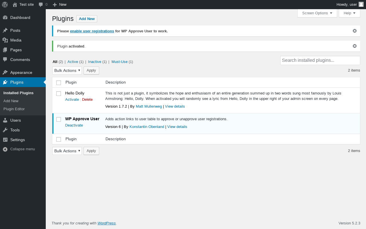 Does WP Approve User work with WordPress 5.2.3 and PHP 7.2.16? A smoke test was performed on .