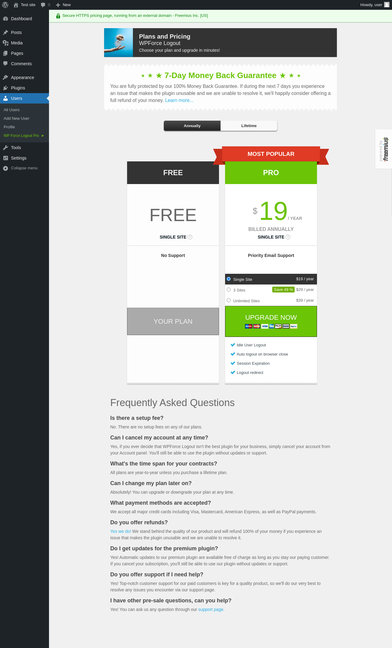 | URL | /wp-admin/users.php?page=wp-force-logout-pricing |
