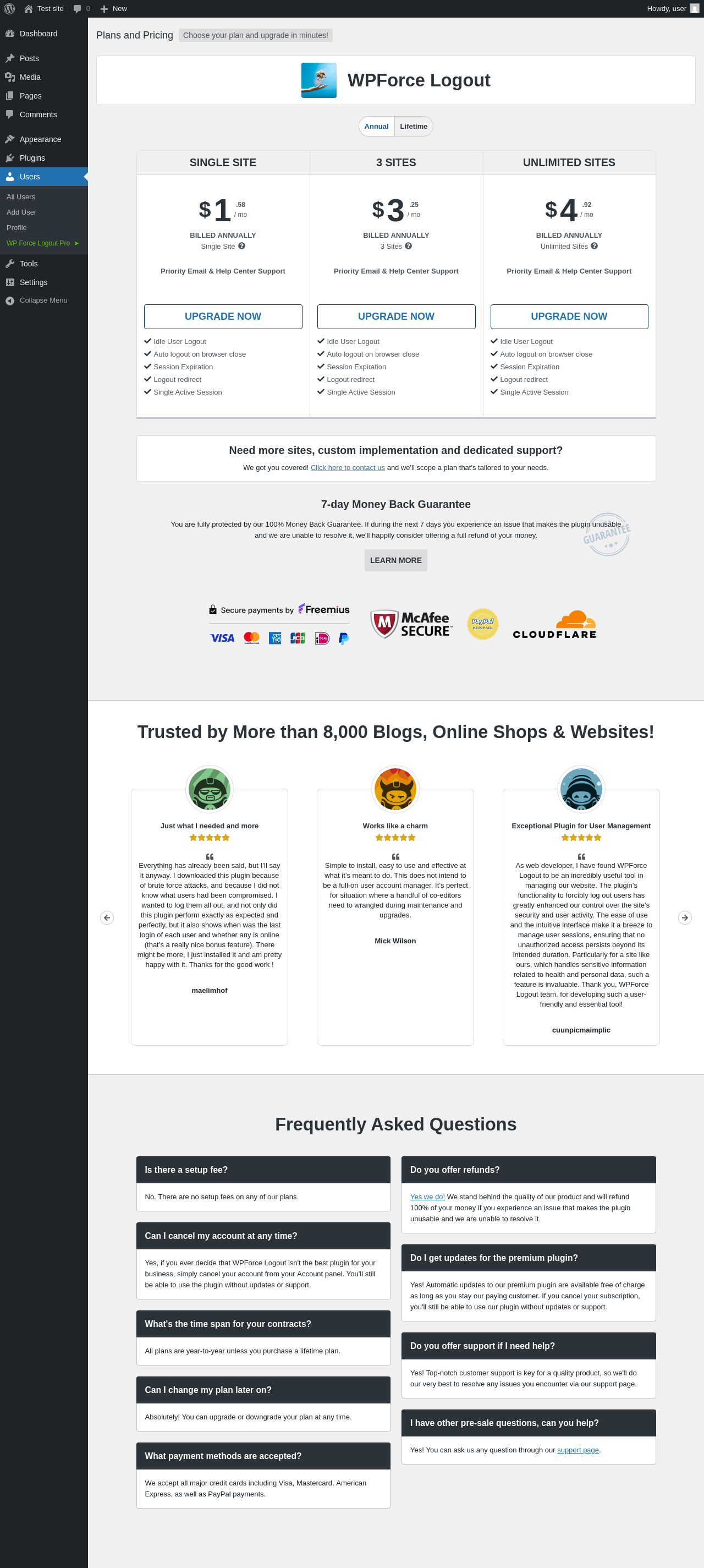 | URL | /wp-admin/users.php?page=wp-force-logout-pricing |