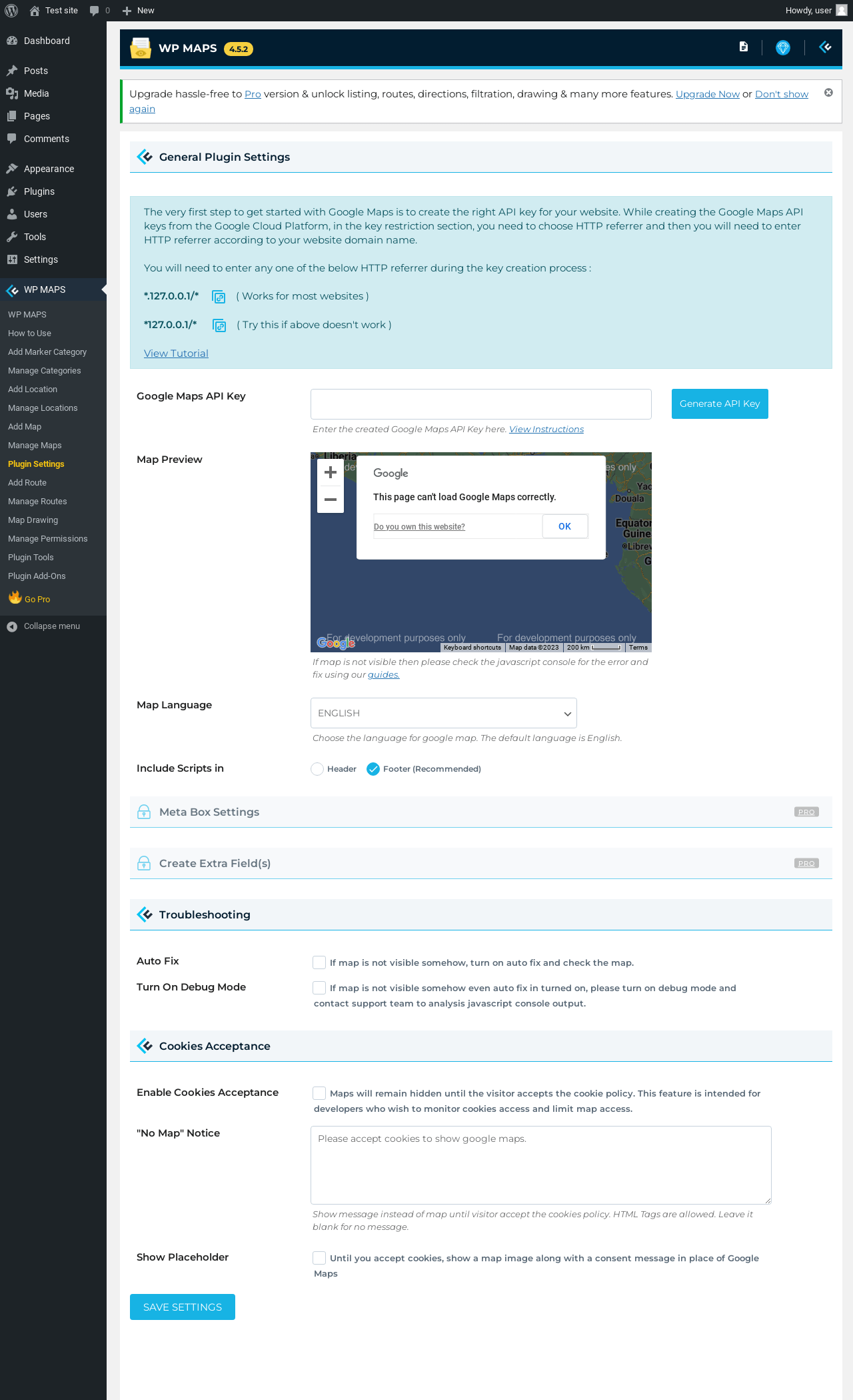 | URL | /wp-admin/admin.php?page=wpgmp_manage_settings |