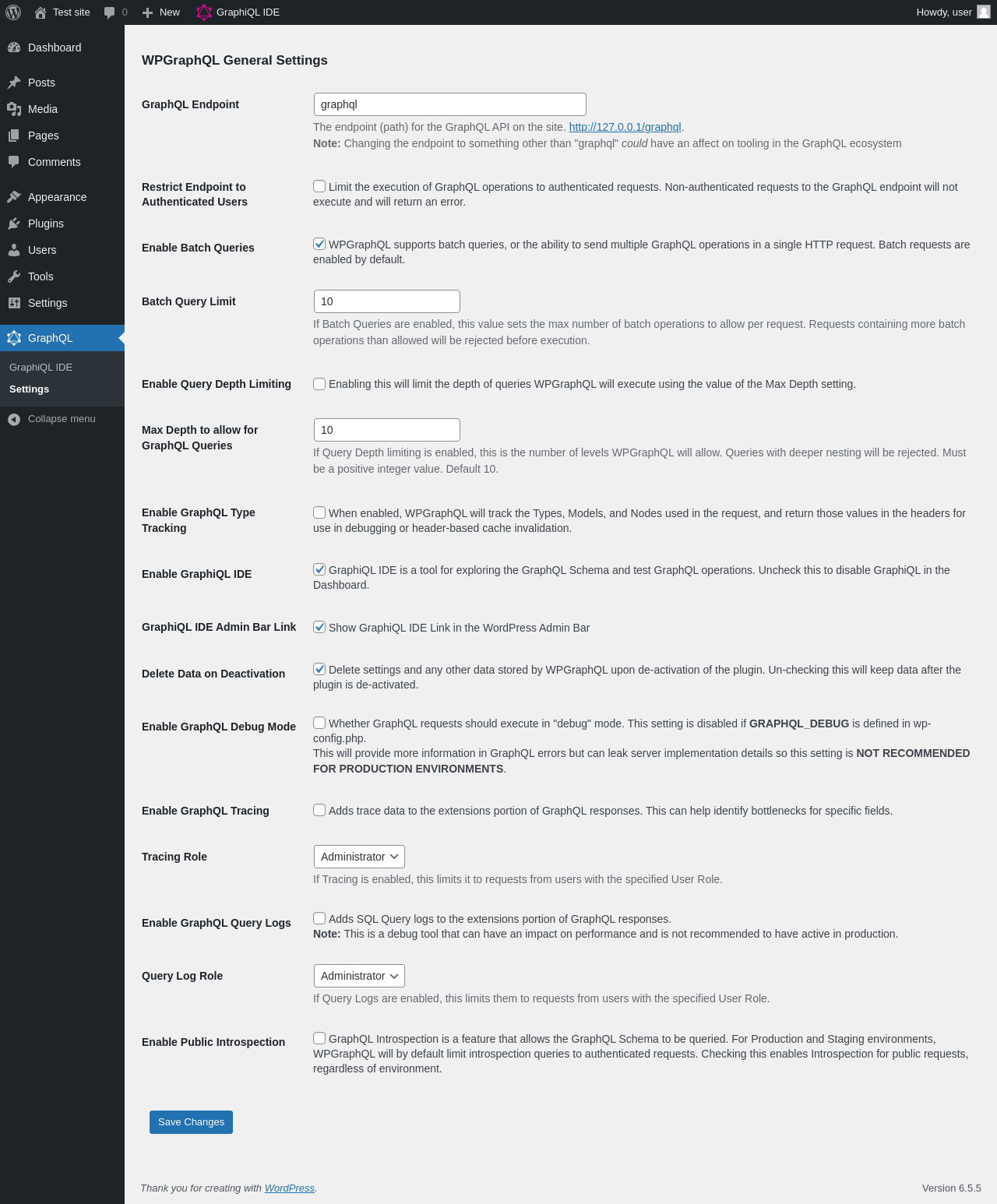 | URL | /wp-admin/admin.php?page=graphql-settings |
