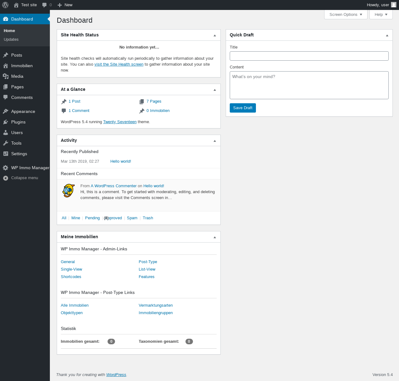 Does WP Immo Manager work with WordPress 5.4 and PHP 7.2.16? A smoke test was performed on .