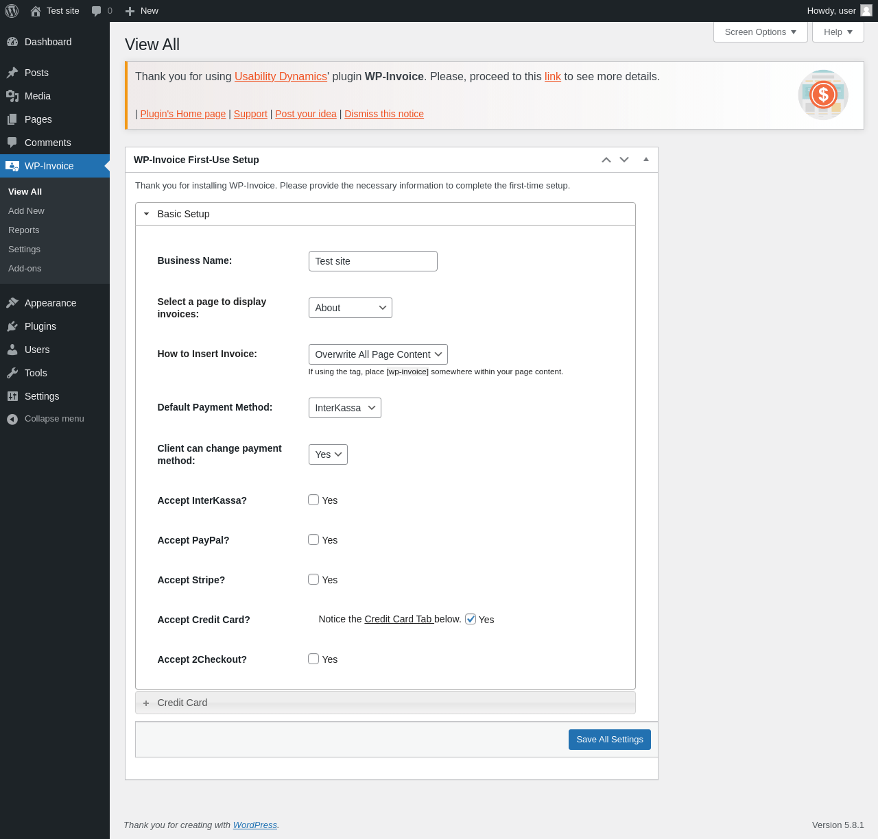 Does WP-Invoice work with WordPress 5.8.1 and PHP 7.4.8? A smoke test was performed on .