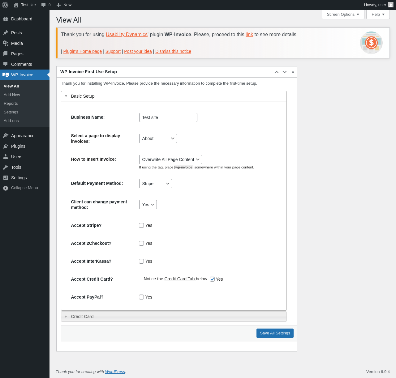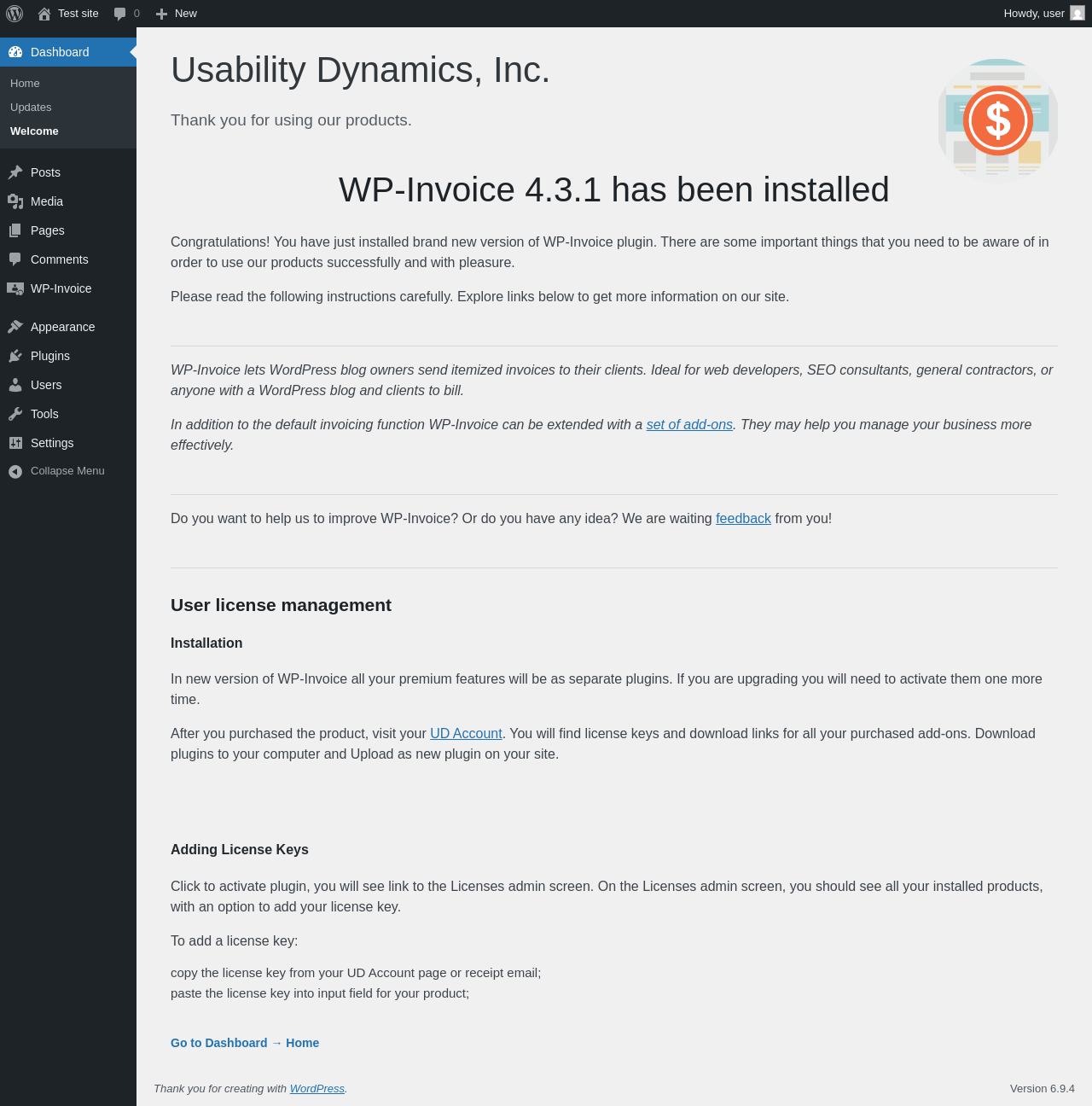 Does WP-Invoice work with WordPress 6.9.4 and PHP 8.1.12? A smoke test was performed on .