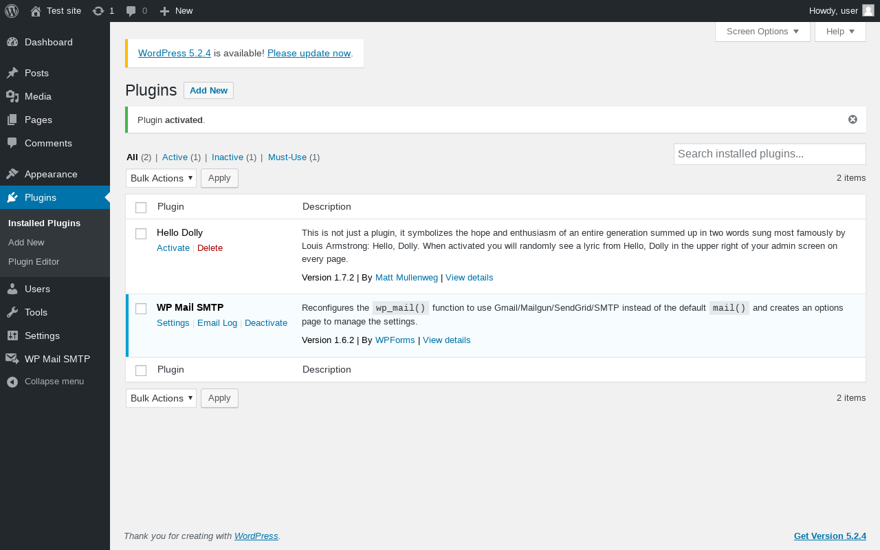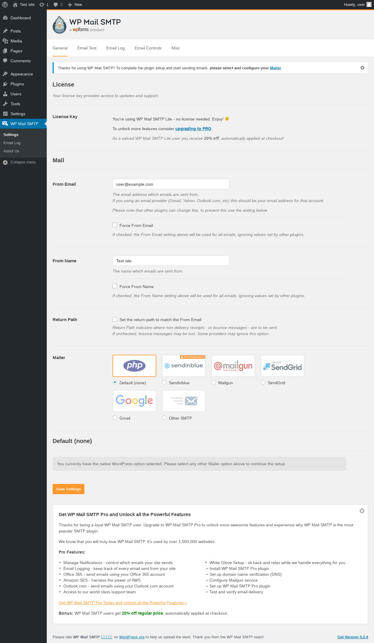 Does WP Mail SMTP work with WordPress 5.2.4 and PHP 7.2.16? A smoke test was performed on .