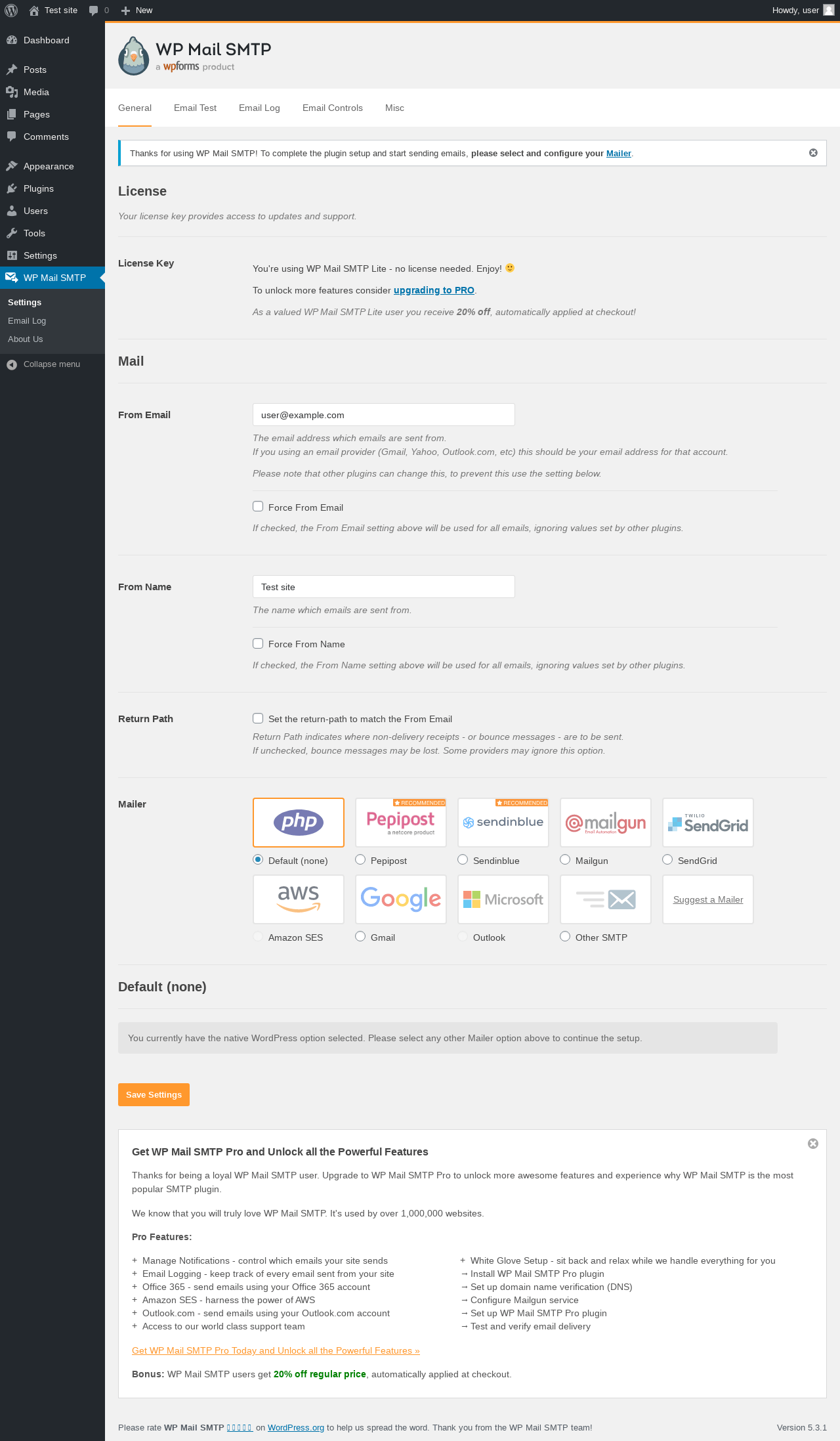 Does WP Mail SMTP work with WordPress 5.3.1 and PHP 7.2.16? A smoke test was performed on .