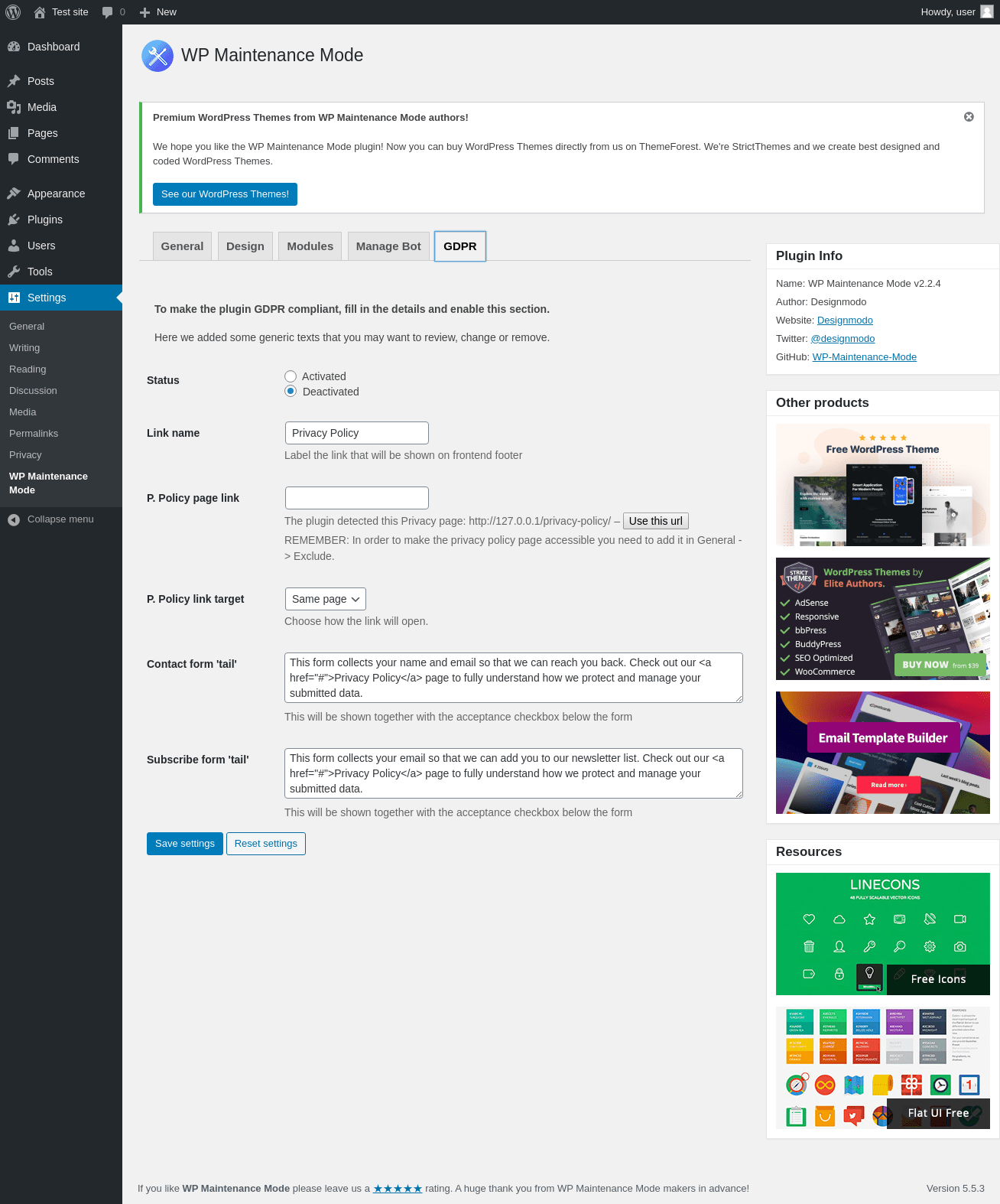 Does WP Maintenance Mode work with WordPress 5.5.3 and PHP 7.4.8? A smoke test was performed on .
