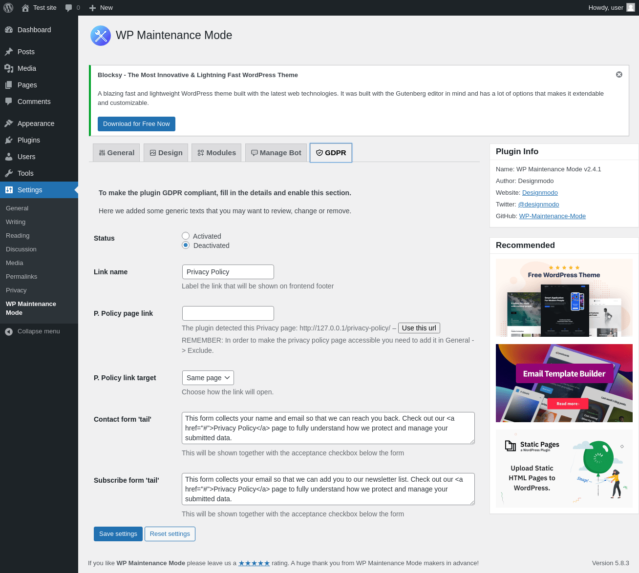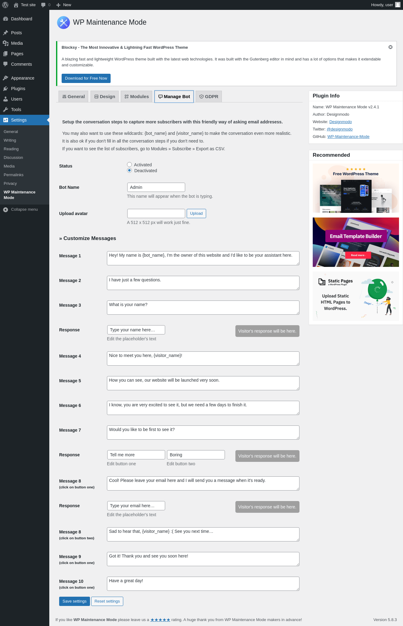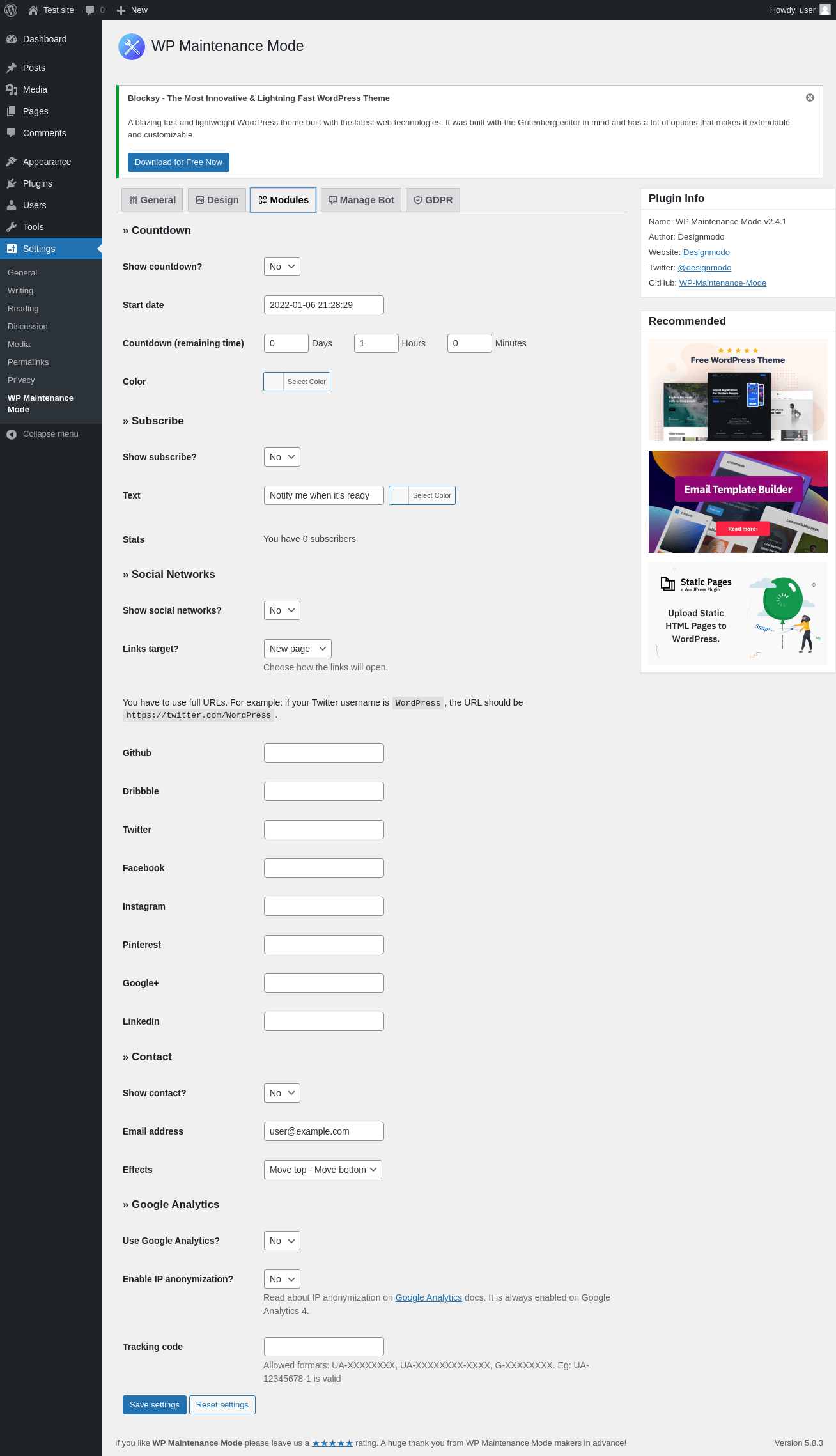 Does WP Maintenance Mode work with WordPress 5.8.3 and PHP 7.4.8? A smoke test was performed on .