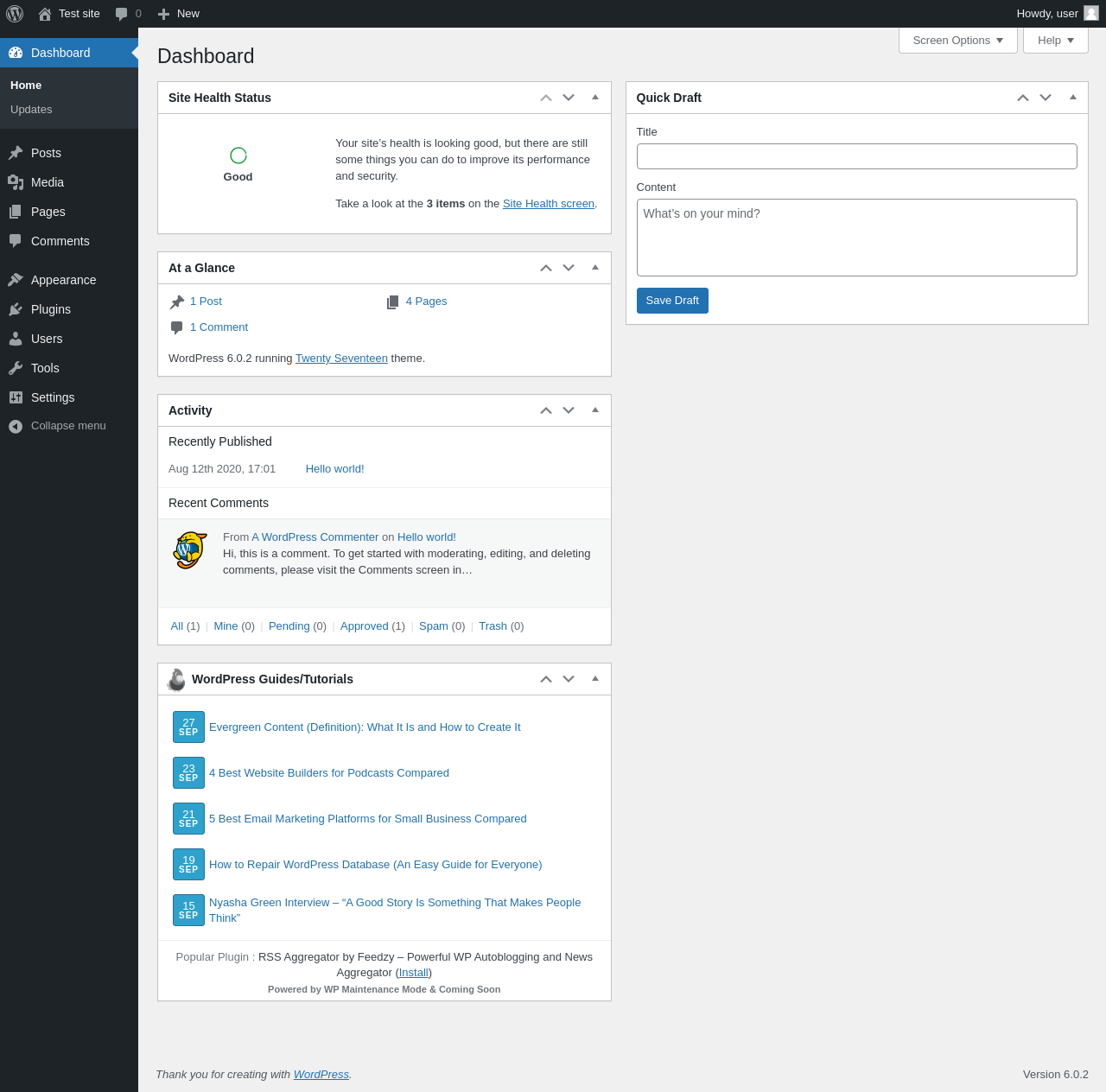 Things that the plugin adds to the site. This section is not intended to be comprehensive. The test tool only looks for a few specific types of added content.